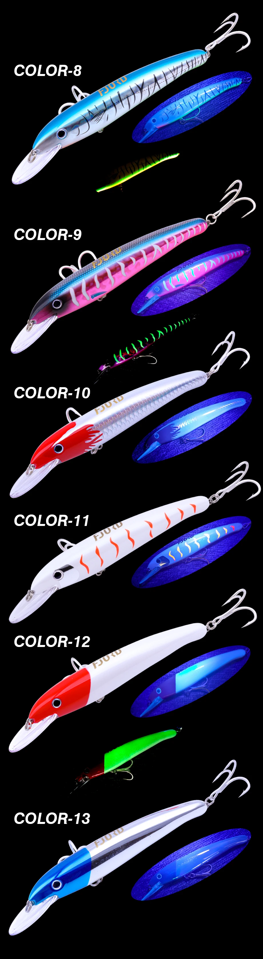 La superficie de los peces ha sido potenciada con rayos UV y efectos que brillan en la oscuridad, lo que puede atraer la atención de los peces en cualquier entorno.