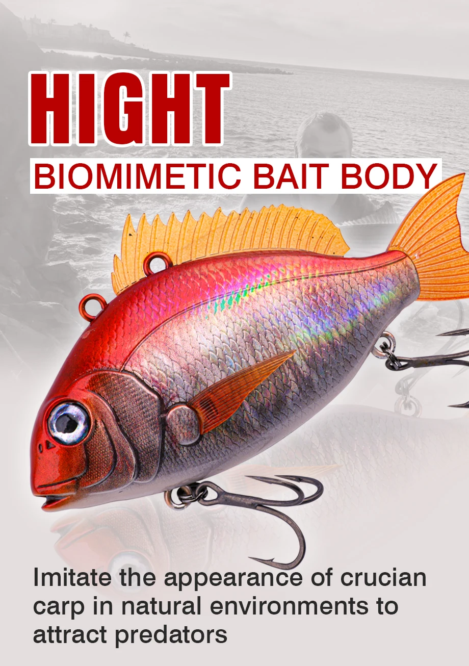 1.Cuerpo de cebo altamente biomimético:Imita la apariencia de la carpa cruciana en ambientes naturales para atraer depredadores.