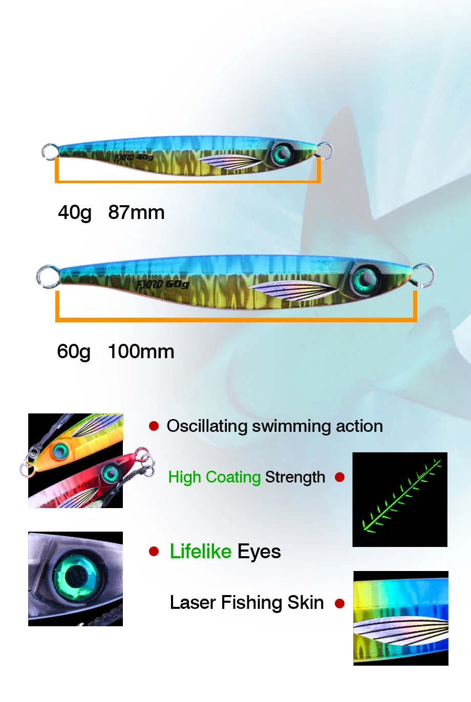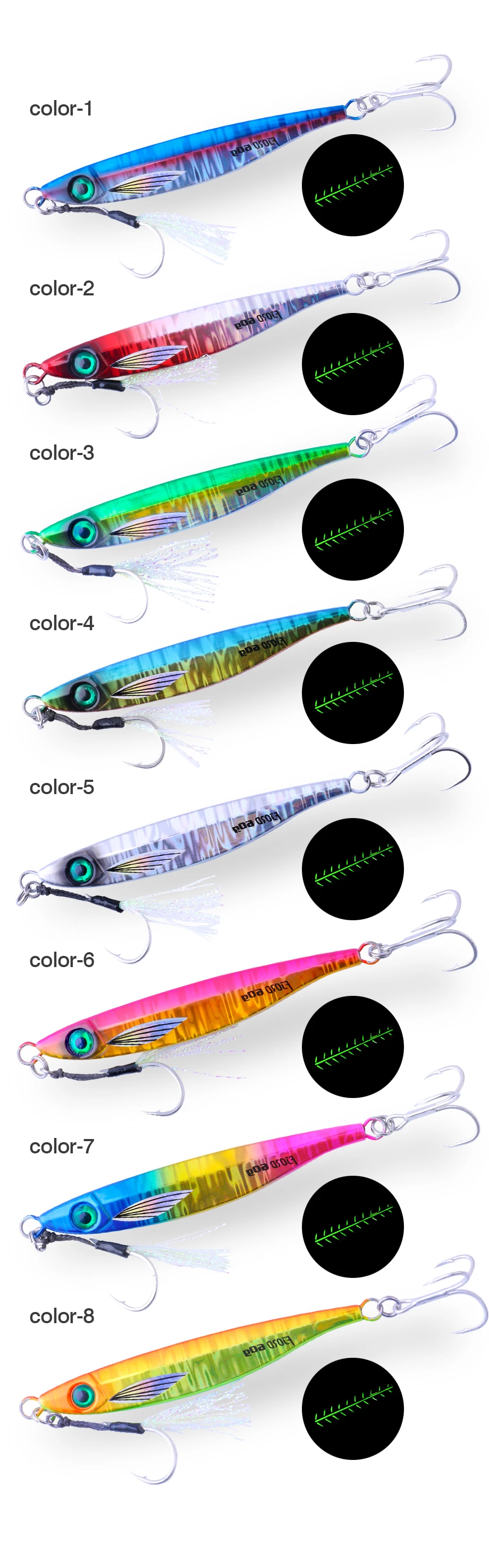 La superficie láser del cebo combinada con un anzuelo auxiliar de brillo negro hace que el cebo luzca más conciso y atmosférico.La punta del anzuelo adopta un diseño de anzuelo invertido afilado, que no es fácil de pescar y es resistente a la corrosión.