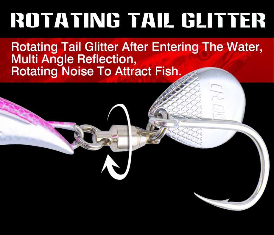 Brillo de cola giratorio después de entrar al agua, reflejo de múltiples ángulos, ruido giratorio para atraer peces