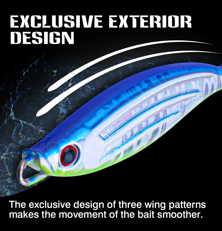 El diseño exclusivo de tres patrones de alas hace que el movimiento del cebo sea más fluido.