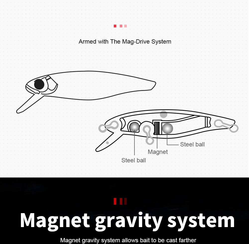 El sistema magnético de gravedad permite lanzar el cebo más lejos