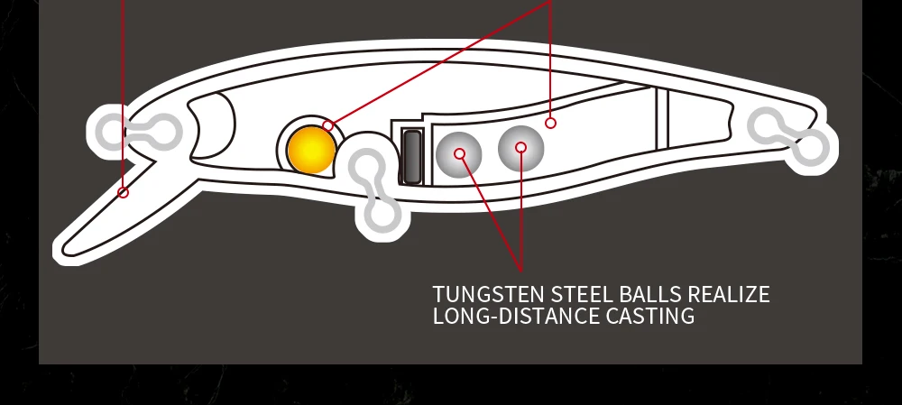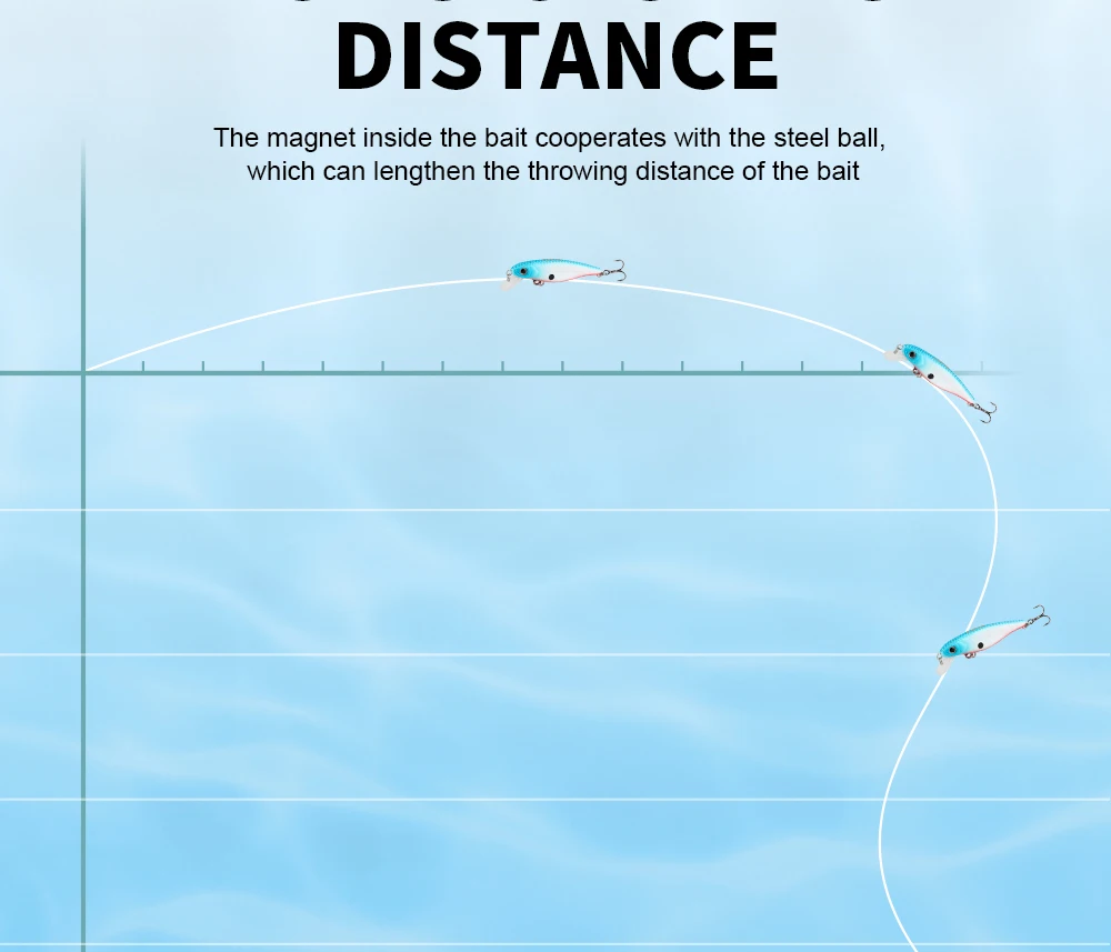 El imán dentro del cebo coopera con la bola de acero, que puede alargar la distancia de lanzamiento del cebo