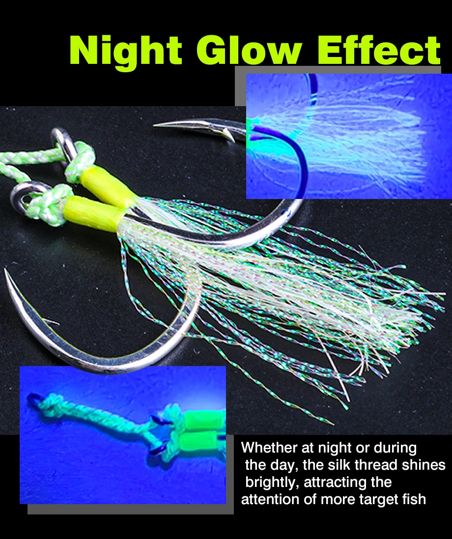 Ya sea de noche o de día, el hilo de seda brilla intensamente, atrayendo la atención de más peces objetivo.