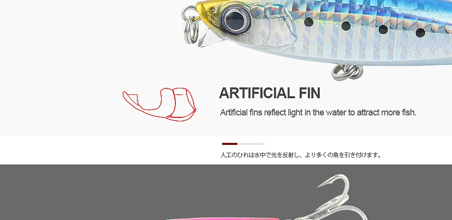 El cebo está equipado con un anzuelo de acero con alto contenido de carbono importado y una configuración de enlace de aplanamiento de doble anillo 360 para fortalecer los anzuelos importados.