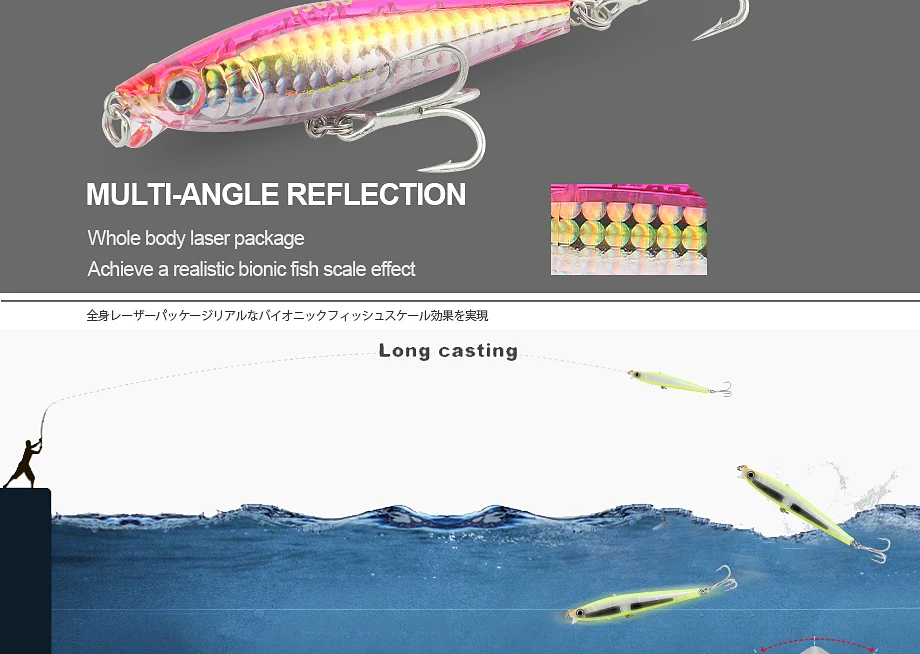 Este es un señuelo hundido, la curva corporal perfecta hará que el señuelo cumpla con la mayor resistencia incluso en el flujo de agua brusco.