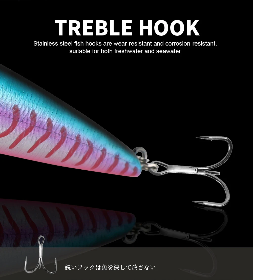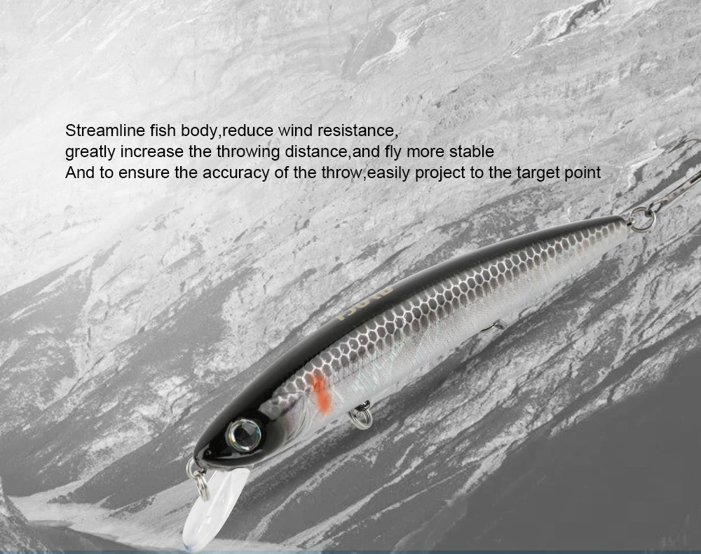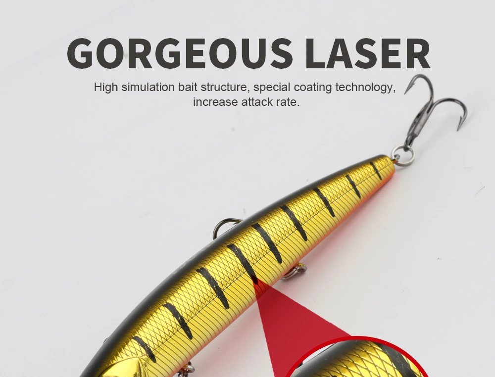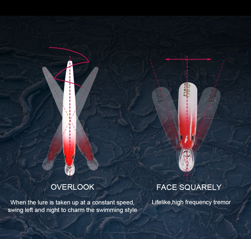 El diseño único del tobogán deportivo hace que la postura de natación del cebo sea más vívida y puede mostrar diferentes posturas de natación de acuerdo con la diferente profundidad de hundimiento y la flotabilidad de la superficie del agua.