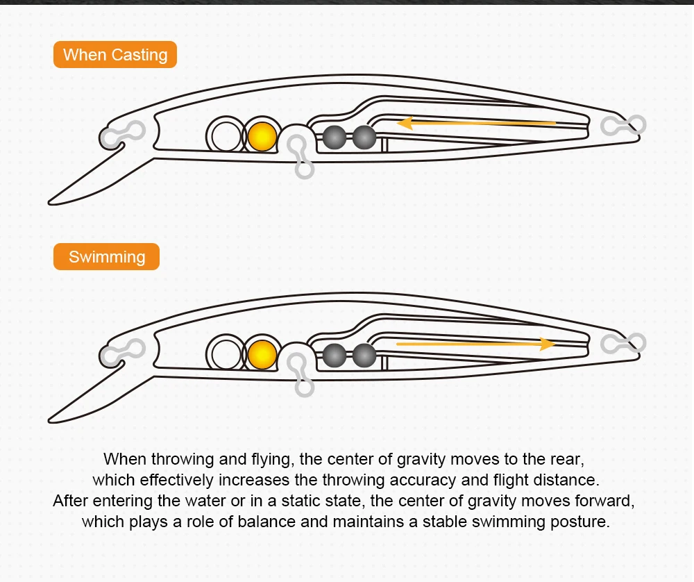 El ajuste de la pelota en el cuerpo puede ajustar el equilibrio del cebo en cualquier momento. Para obtener un estilo de natación más estable, que tiene una mayor tentación para los peces de baja actividad