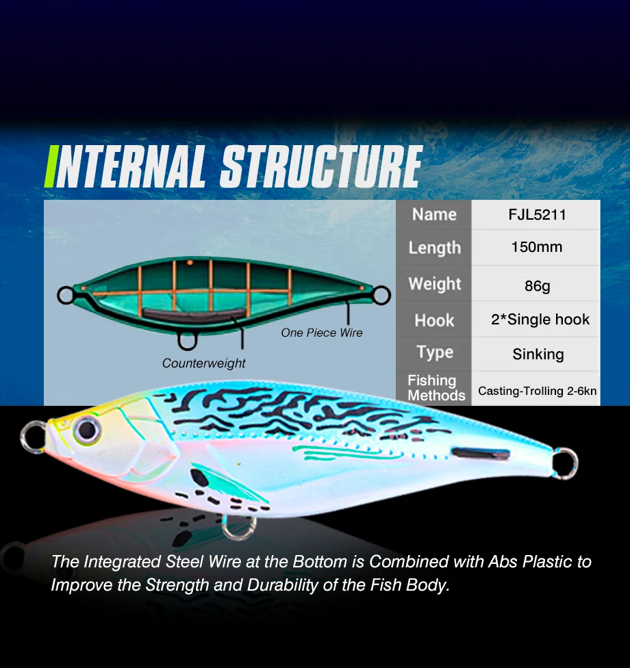 1.ESTRUCTURA INTERNA:El alambre de acero integrado en la parte inferior está combinado con plástico ABS para mejorar la resistencia y durabilidad del cuerpo del pez.