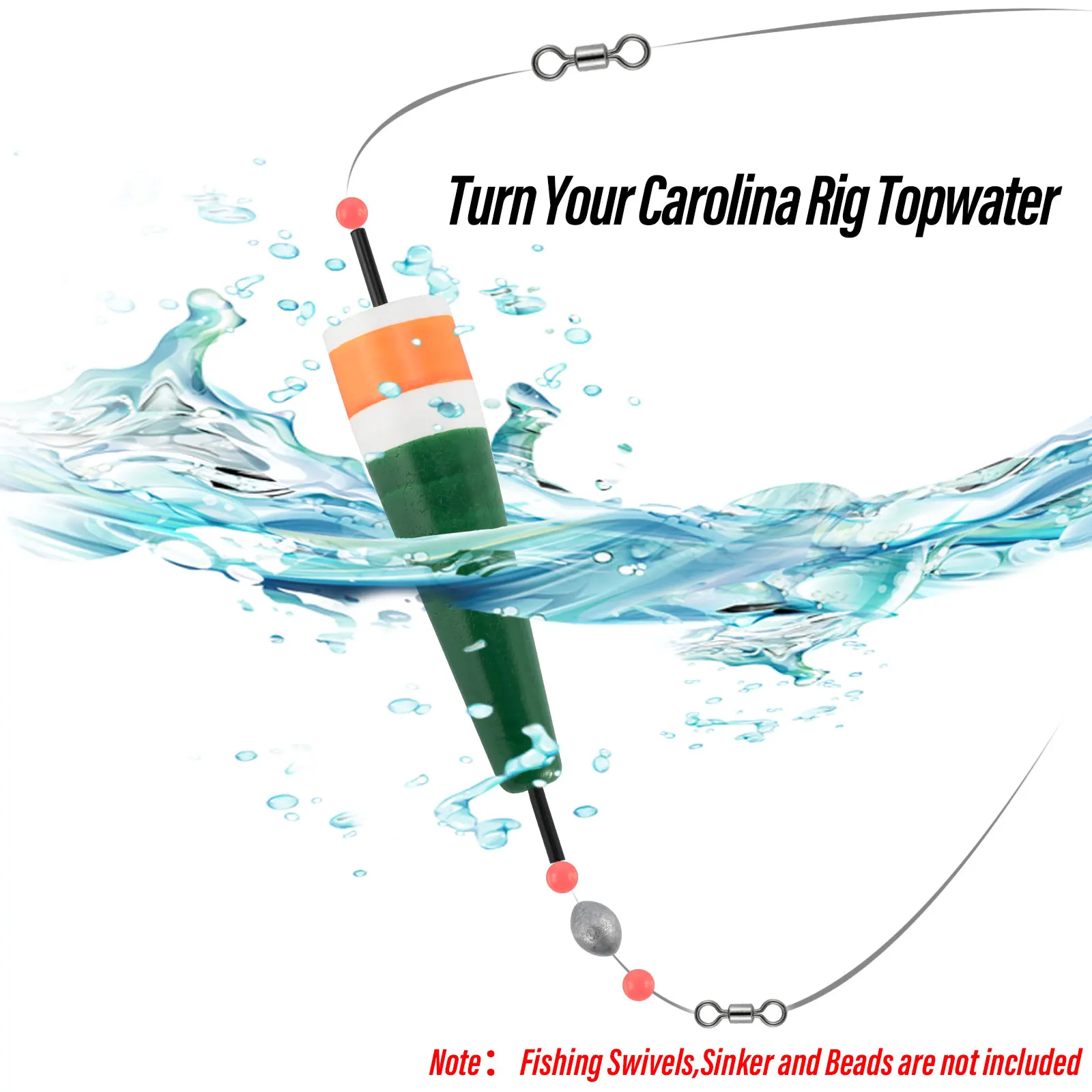 Fácil de usar:Este flotador de corcho puede convertir su plataforma Carolina en agua simplemente reemplazando el peso de la bala. Simplemente coloque este corcho de la forma en que ata su aparejo Carolina, usando una línea de pesca regular o un líder de acero. A continuación, añada cuentas y peso para ajustar la columna de agua.