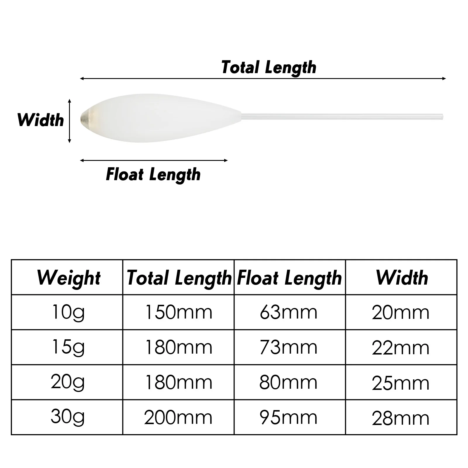 Diseñado para lanzar señuelos o moscas a larga distancia con buen control. También funcionan como grandes flotadores de trucha y controladores de superficie para pescadores de carpa.