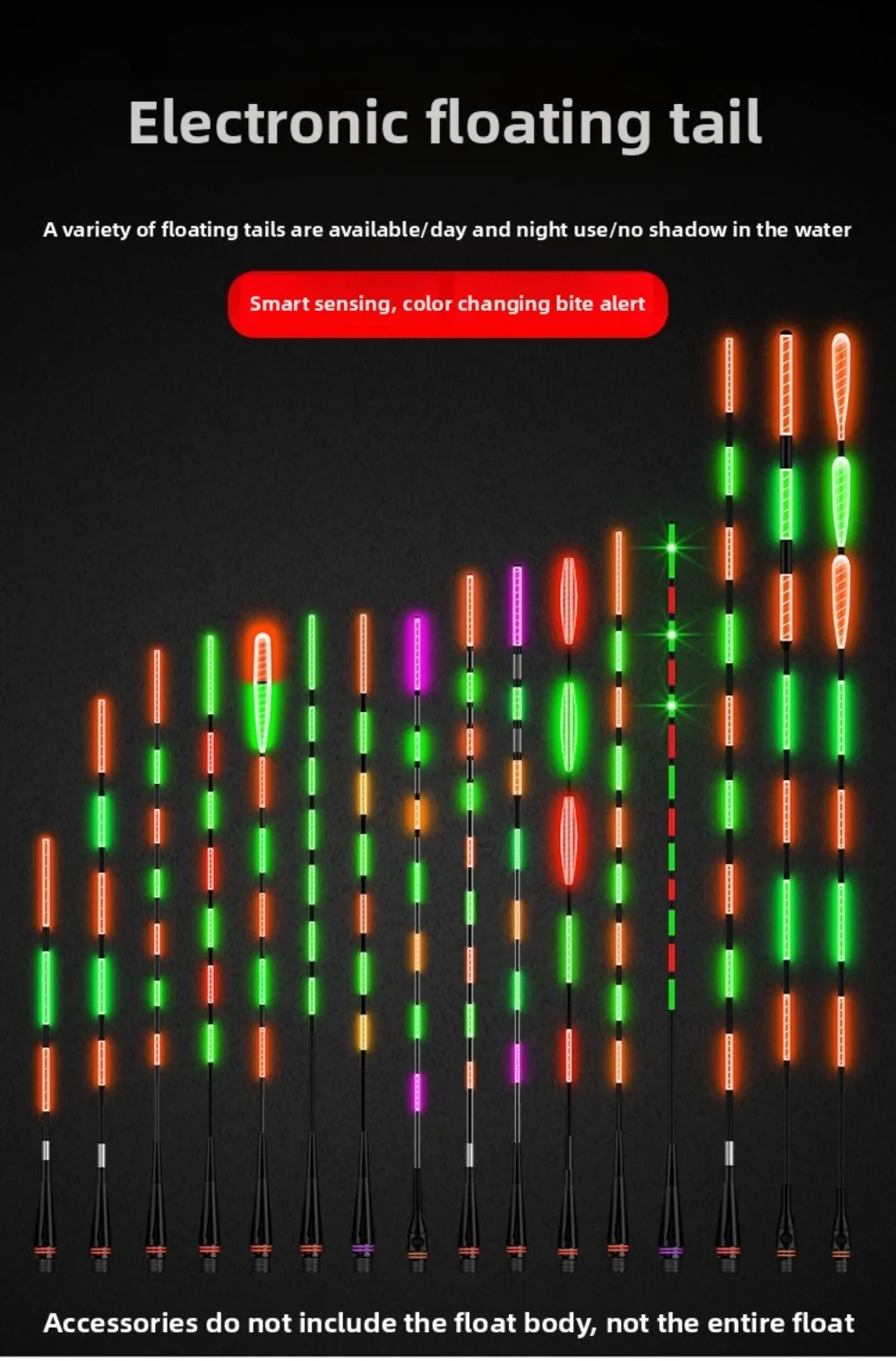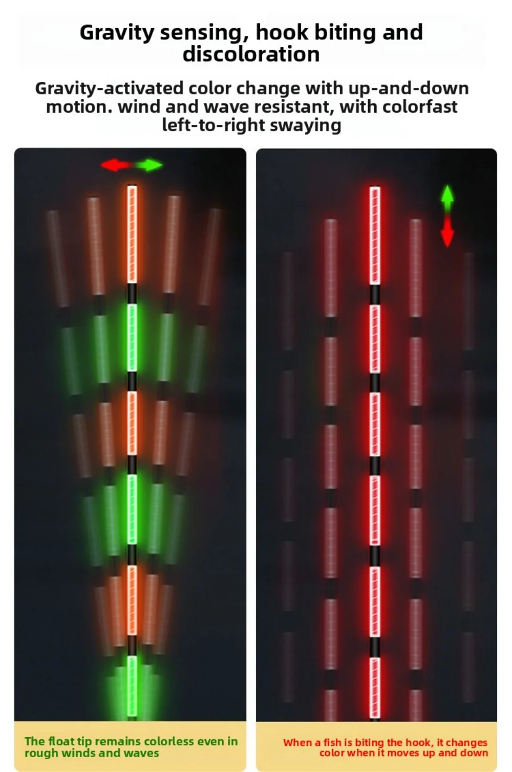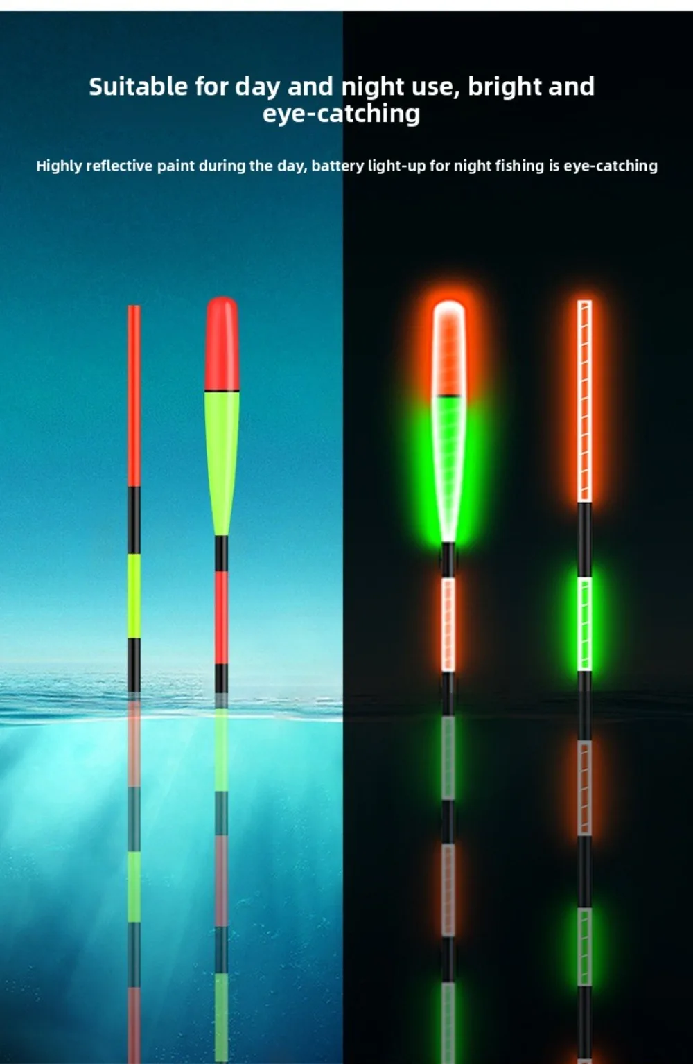 Note:Electronic float, suitable for day and night use, does not change color when biting the hook