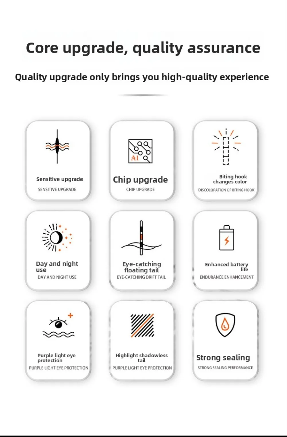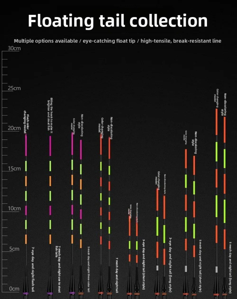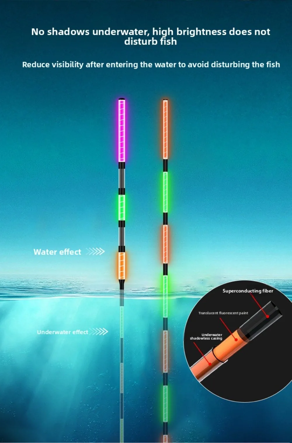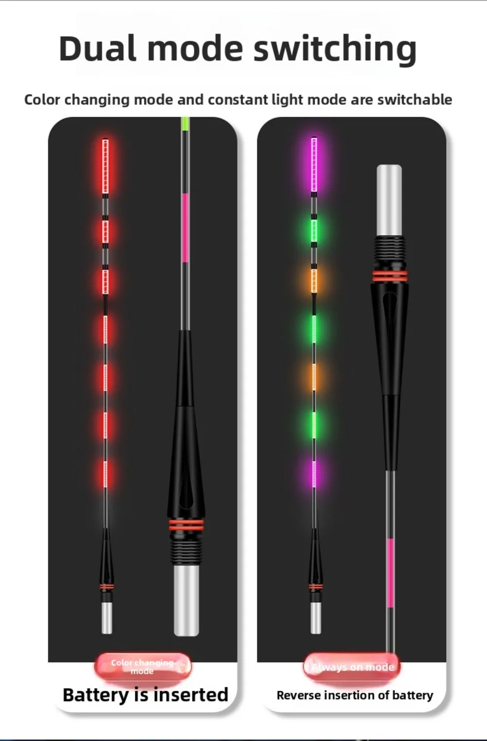 Note:Electronic float, suitable for day and night use, does not change color when biting the hook