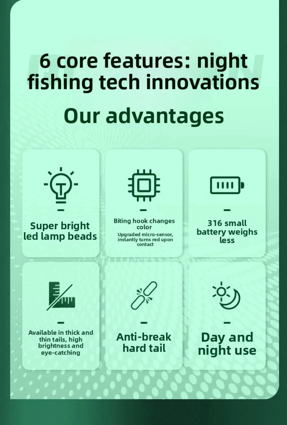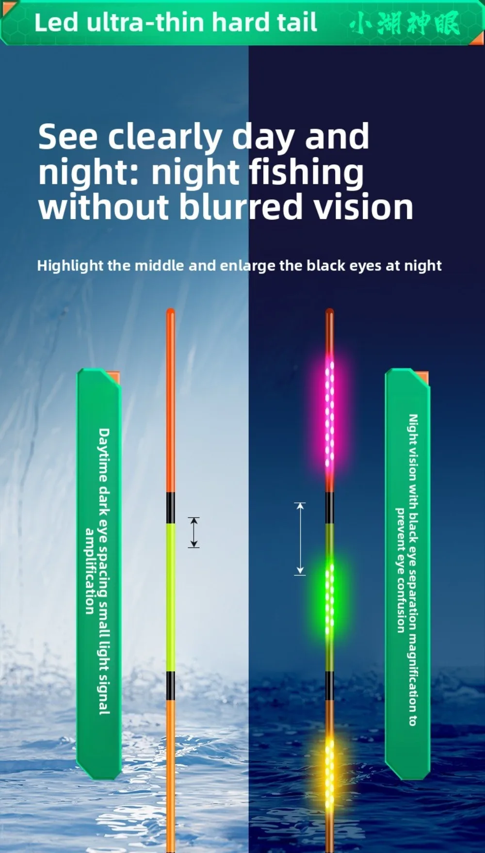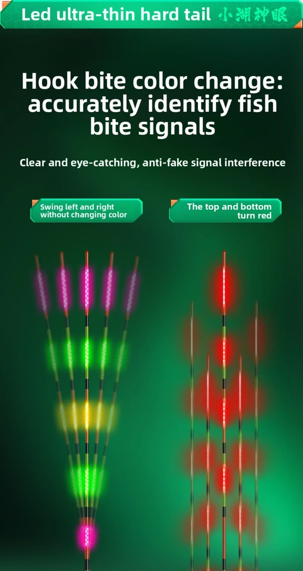 Note:Electronic float, suitable for day and night use, does not change color when biting the hook