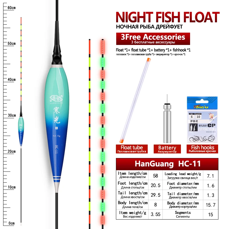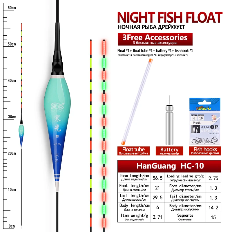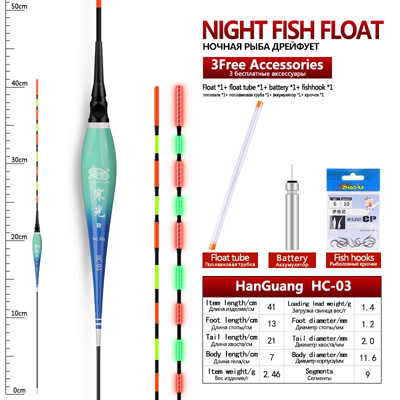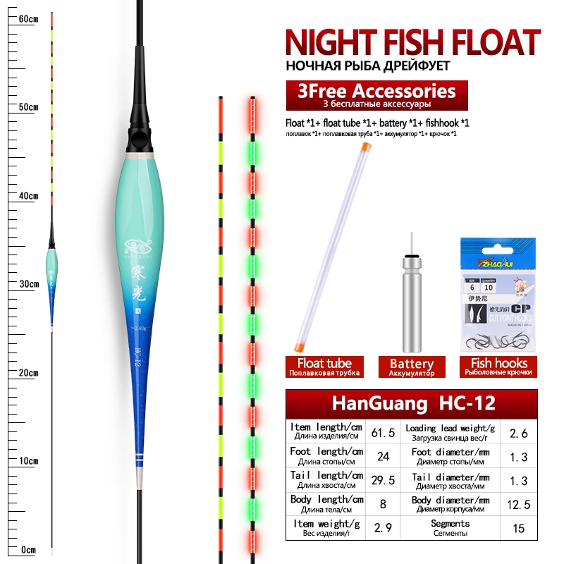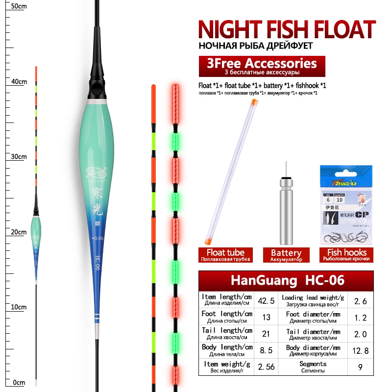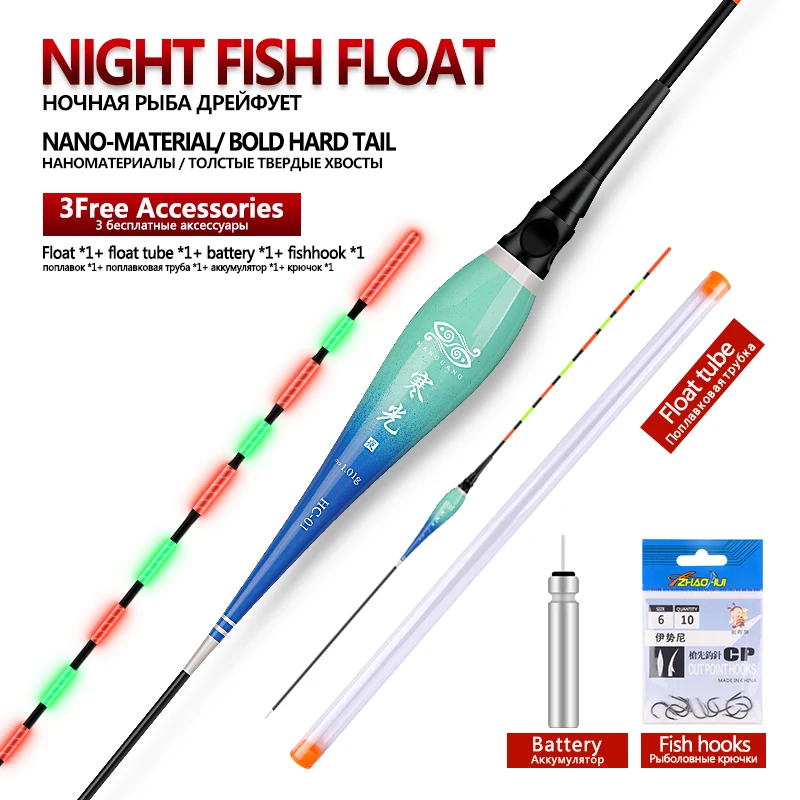 Flotador luminoso + 1 CR425 + 1 tubos flotantes + 1 ganchos para bolsas, boya eléctrica, boya Vertical, lago, río, Bobber, accesorios de aparejos, herramientas, 1 ud.
