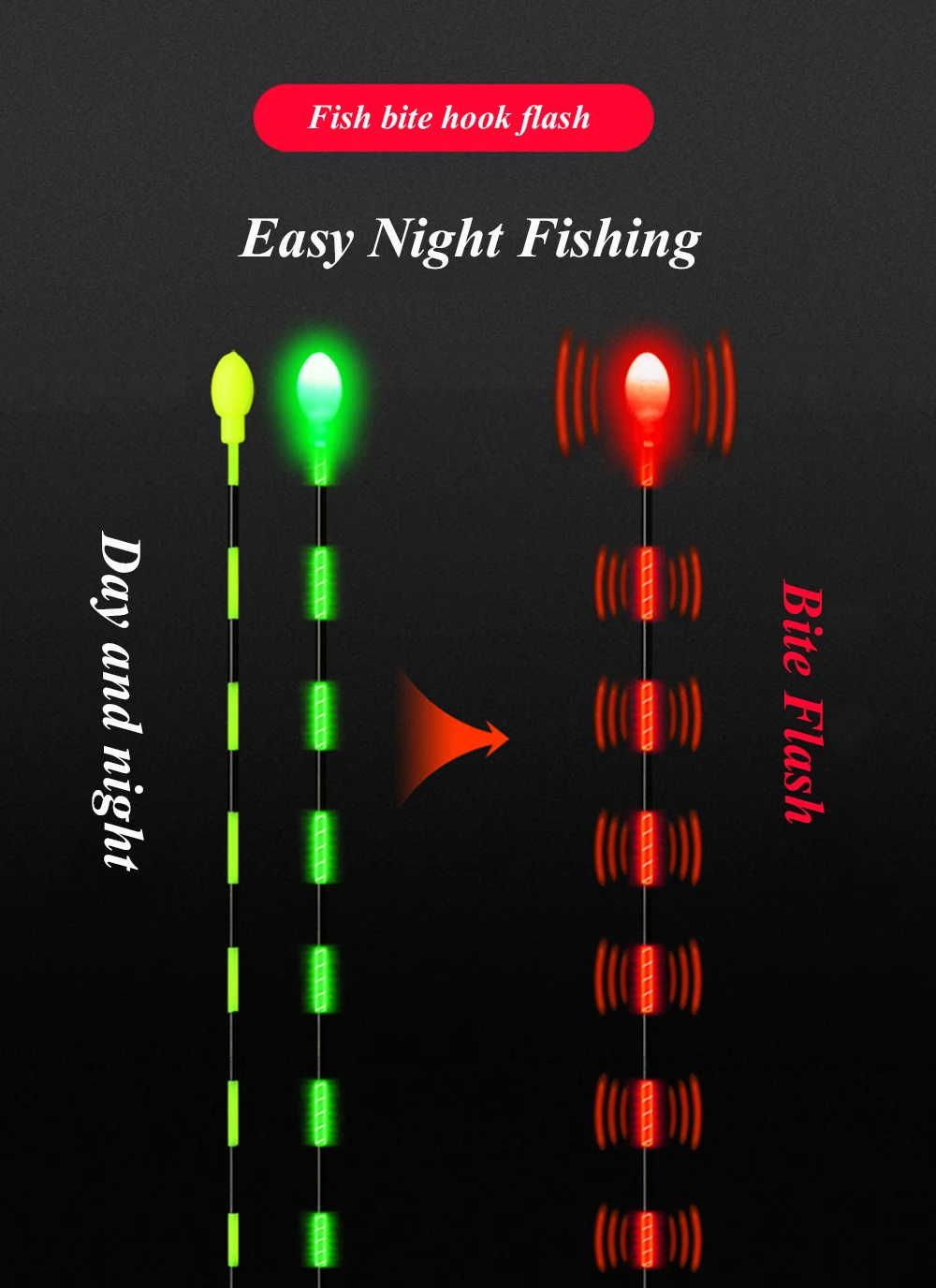 Introducción del producto: el flotador utiliza el último chip sensor de gravedad de quinta generación, que tiene una fuerte capacidad anti-viento y olas y alta sensibilidad. Cuando el pez muerde el anzuelo, el flotador cambia de verde a rojo y parpadea durante 3 segundos.