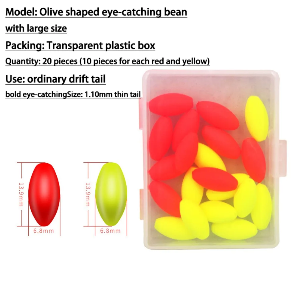 Product list:1box 20,10of each color Features:Make the fish float more eye-catching, the long-distance observation is clearer, and the sensitivity is higher.