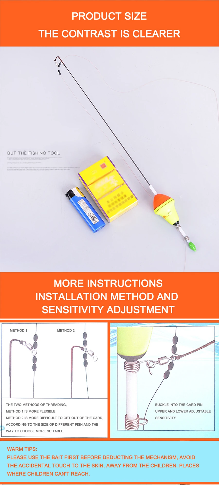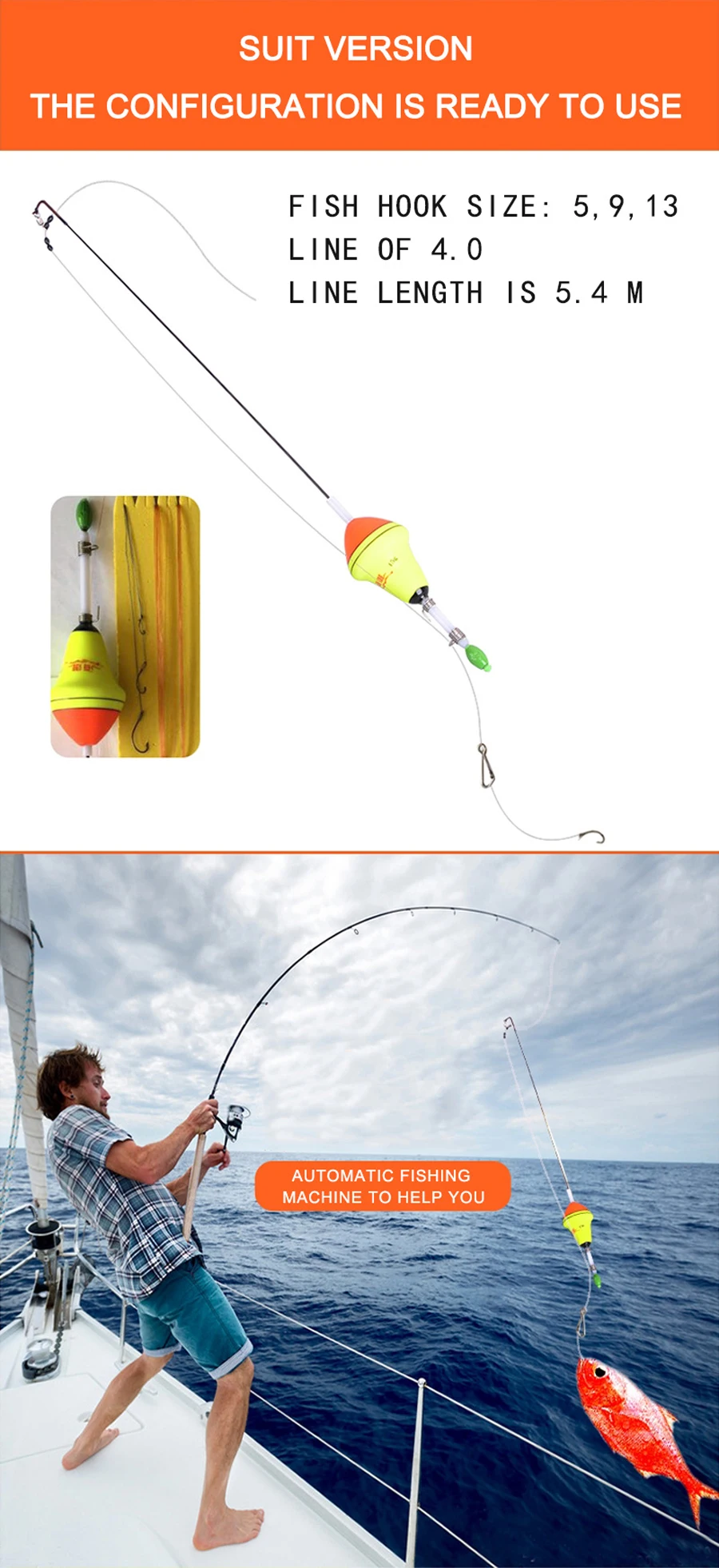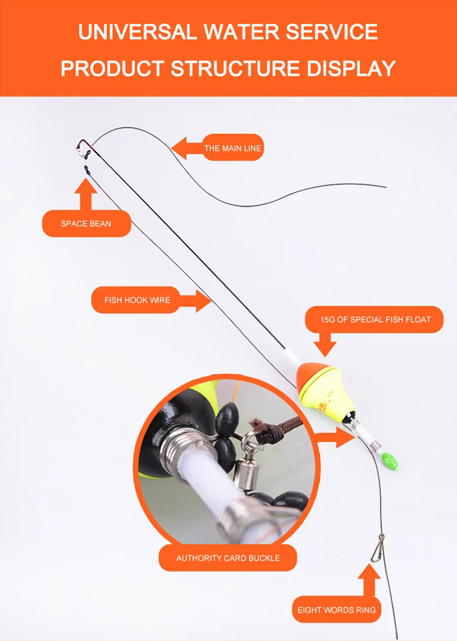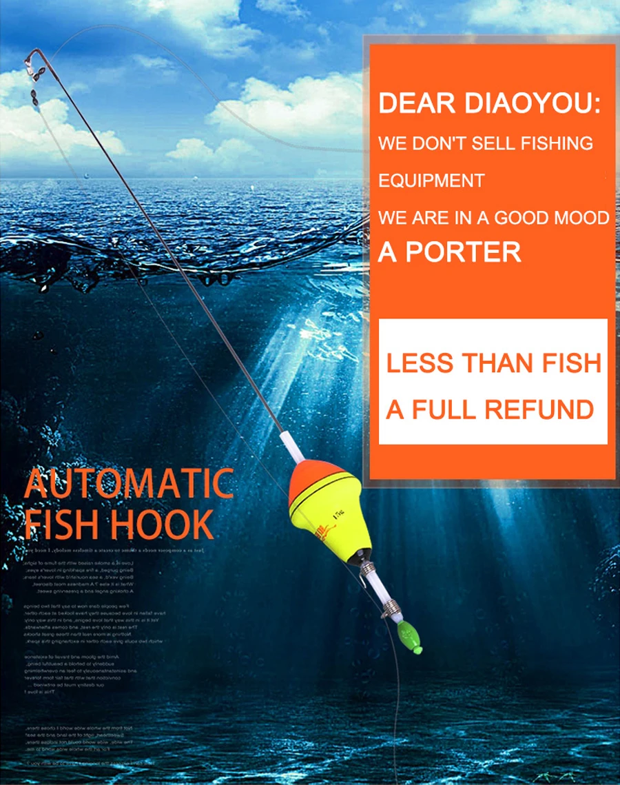 Características: Material flotante: nano EVA, revestimiento de Flotador: importado multicapa con fluorescente. Material de la bala: alto carbono Piezas de Metal: acero inoxidable Tamaño: Longitud total: 39cm Diámetro del Centro flotante: 3,8 cm El paquete incluye: 1 flotador de pesca automático (no incluye sedal).