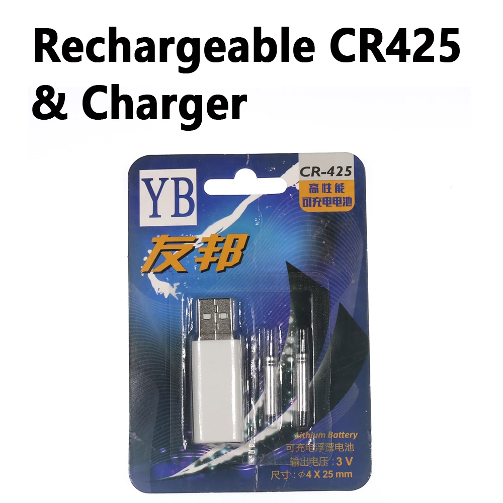 B: batería recargable CR425 de 2 piezas con 1 cargador, aproximadamente 6 ~ 8 horas de tiempo de servicio, 1 Juego por lote;