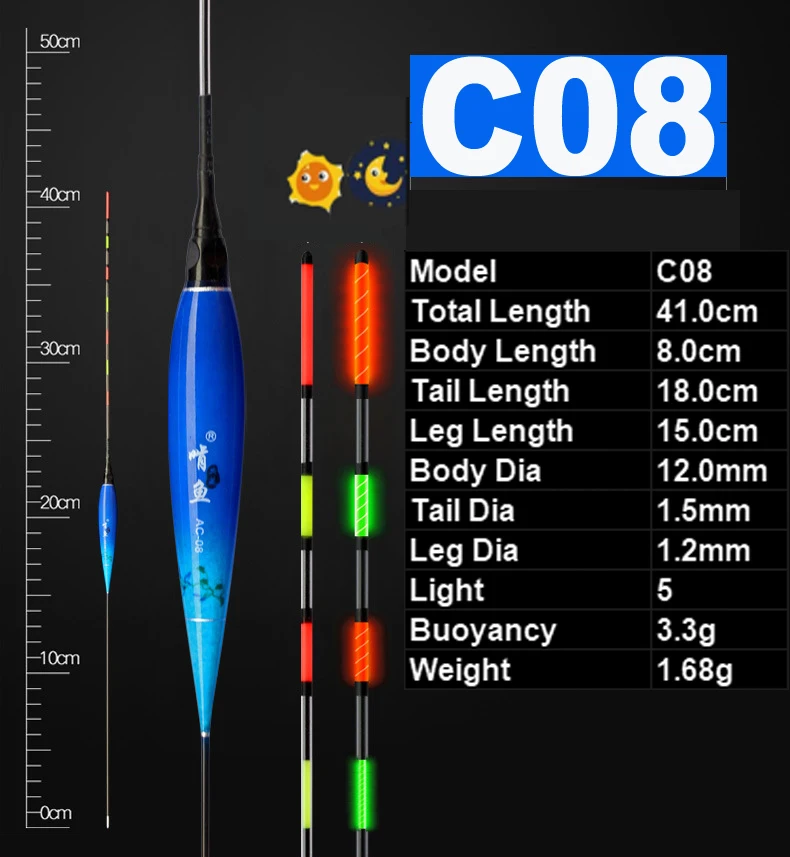 1 piezas de flotador de pesca de carpa electrónico, flotador brillante, flotador de pesca nocturna CR425, batería/recargable opcional