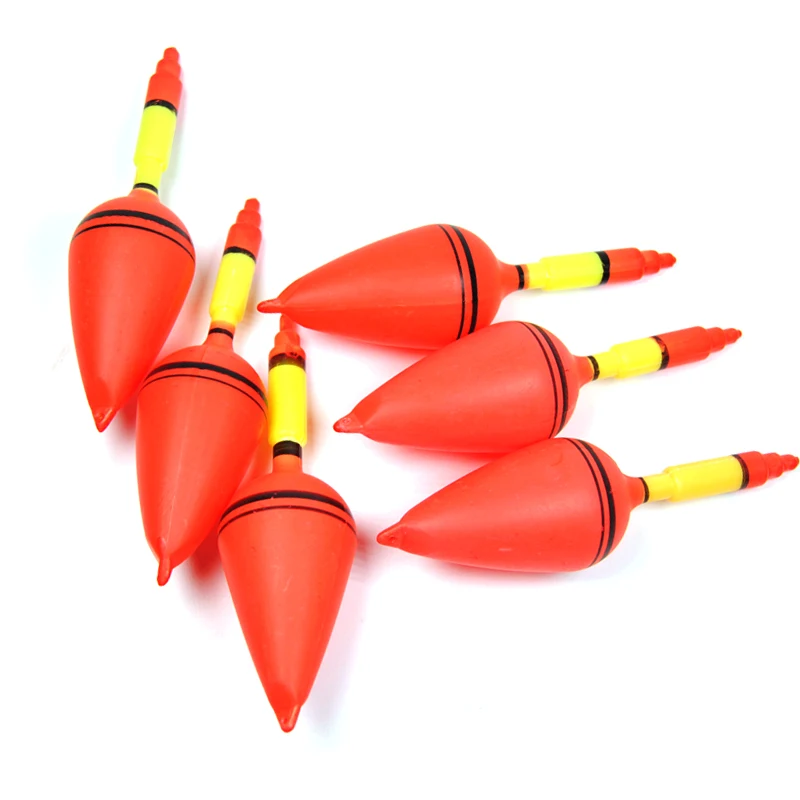 6 uds sobre 50g flotabilidad gran vientre plástico mar pesca flotador con agujero plástico largo fundido caña pesca flotador bobbers