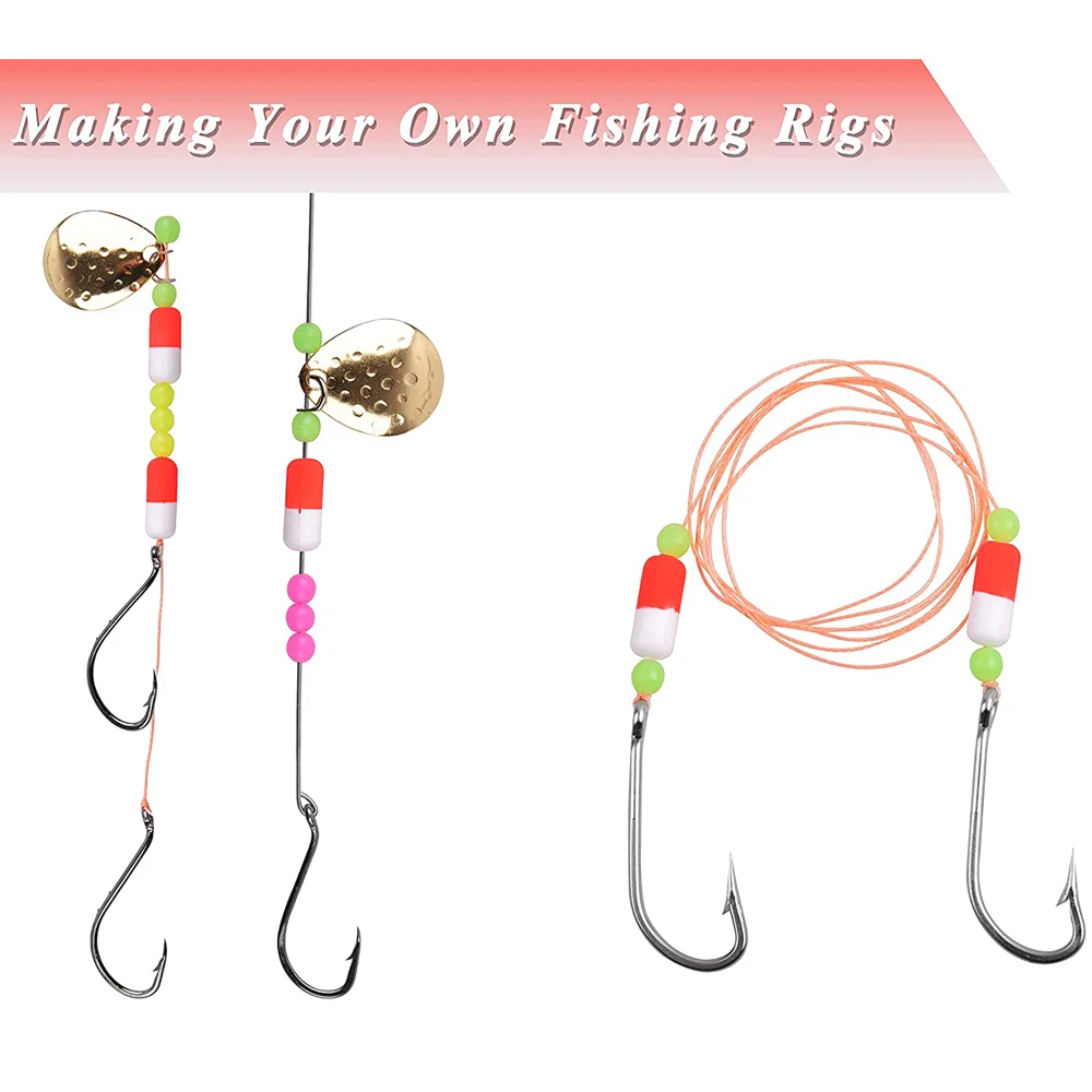 FÁCIL DE USAR: Un agujero en el centro del flotador te permite pasar el sedal fácilmente. Simplemente agregue anzuelos, pesas y sedal para hacer varios aparejos de pesca y comience su viaje de pesca simplemente.