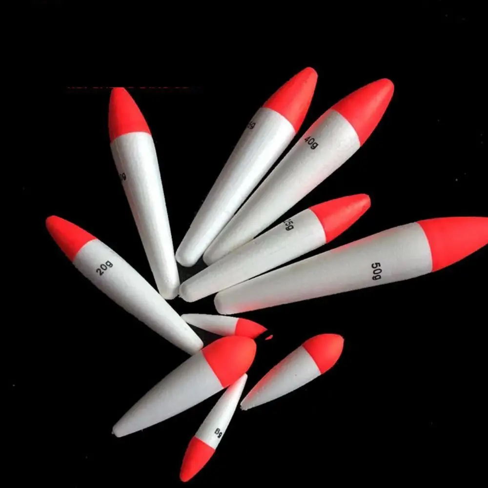Nombre: flotador de pesca Material: Espuma Tipo: Espuma Flotador a la deriva Tipo de cola: dura Color cola: rojo + blanco Especificación: embalaje: 2G/3G/5g/8g/10g/15g/20g/25g/30g/35g/40g/50g/60g. 5 Flotadores de pesca de la piezas Característica: 1. Como objeto flotante, puede flotar en el agua. 2. Fija el sedal en el agujero con una caña de goma negra. 3. Una vez que el pez muerde el anzuelo, puede recibir la señal inmediatamente.