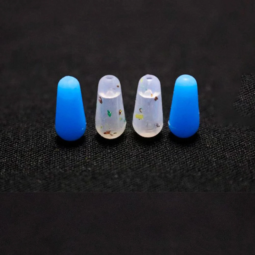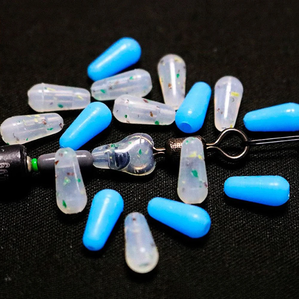 50 unids/lote de frijol espacial de goma antibobinado de alta calidad, carpa de mar, pesca con mosca, tapón de goma azul ovalado, flotador de pesca, Bobber de pesca