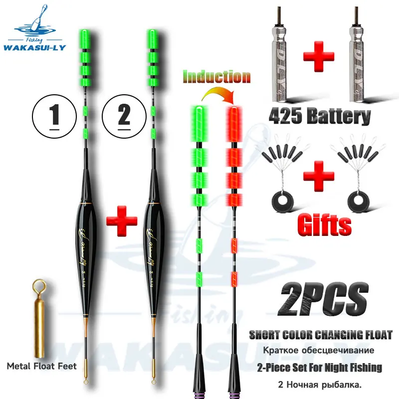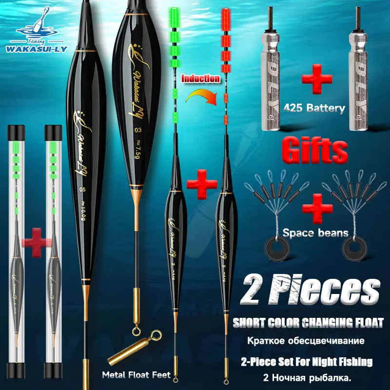 Flotador de pesca nocturna, equipo de pesca de alta sensibilidad al aire libre, detección de gravedad corta, roca roja, WAKASUILY, 2 piezas