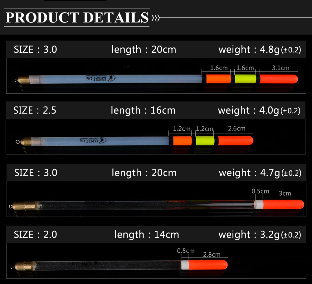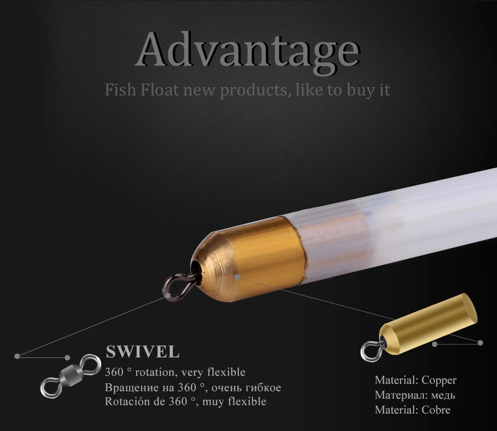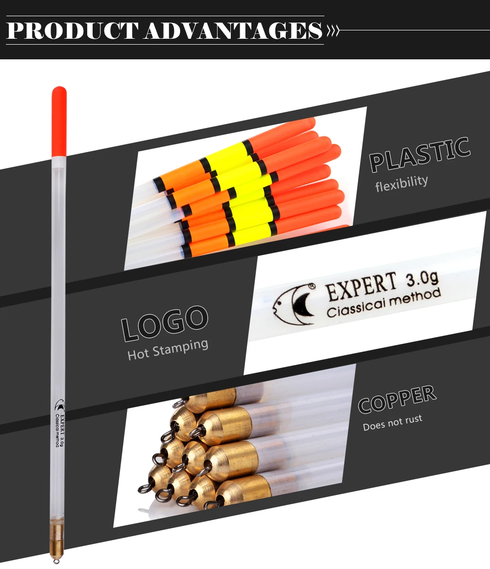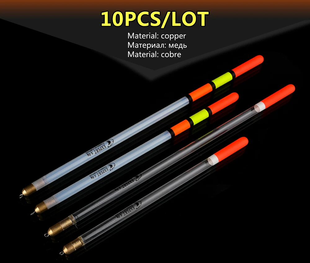 Flotador de pesca de plástico duro, 10 piezas, transparente, 1,5/2,0/2,5/2,6/3,0G, tamaño mixto, tubo, boya Vertical, accesorios de pesca