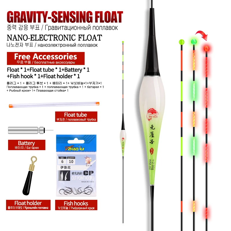 Flotador con Sensor de gravedad eléctrico + 1 CR425 + 1 tubo flotante + 1 gancho para bolsa + 1 cuentas de descanso flotante, boya luminosa Nano que cambia de Color, 1 ud.