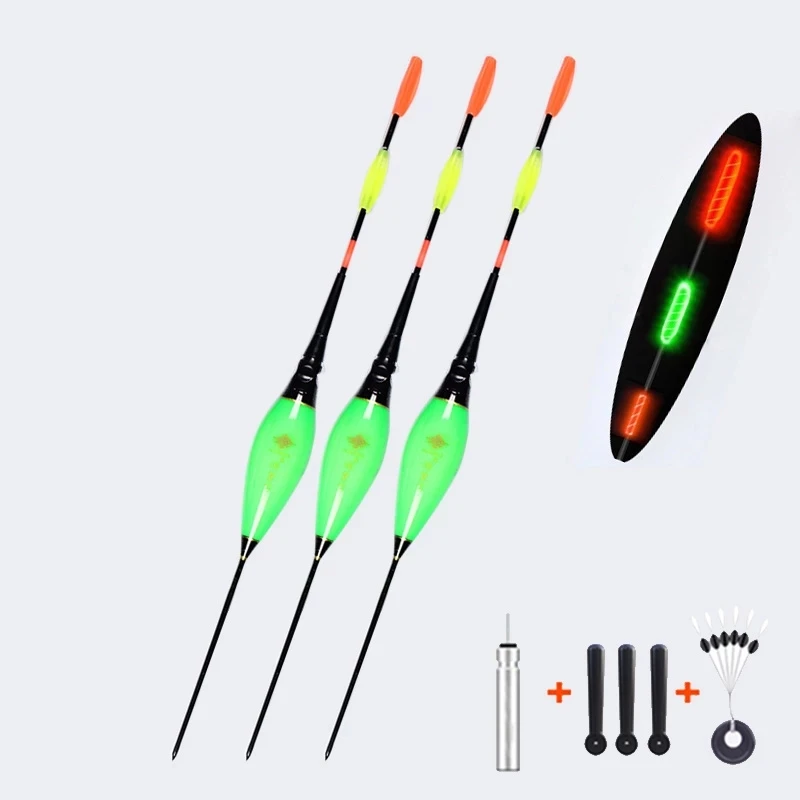 3 unids/lote flotadores de pesca eléctricos luminosos de alto brillo pesca nocturna carpa Buoyancy Bobbers accesorio gratis