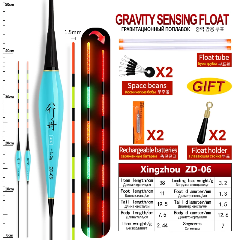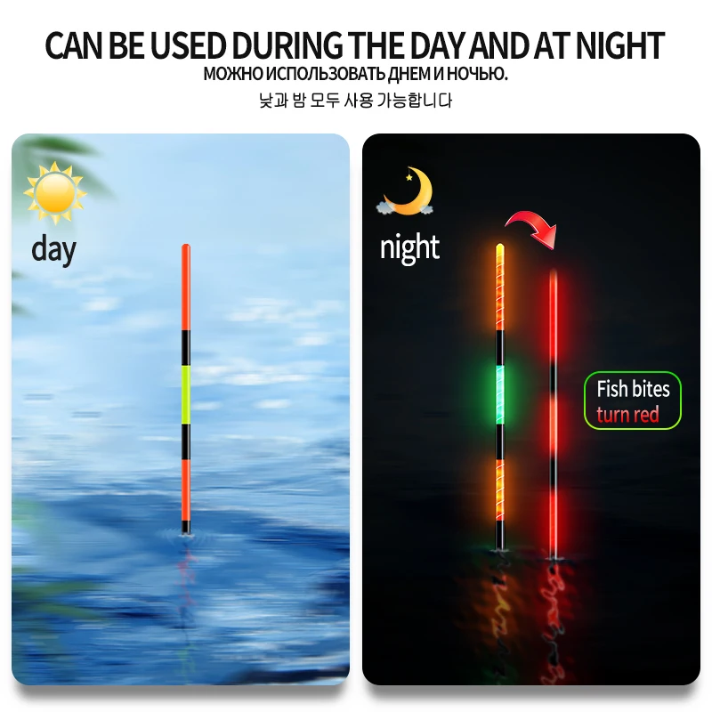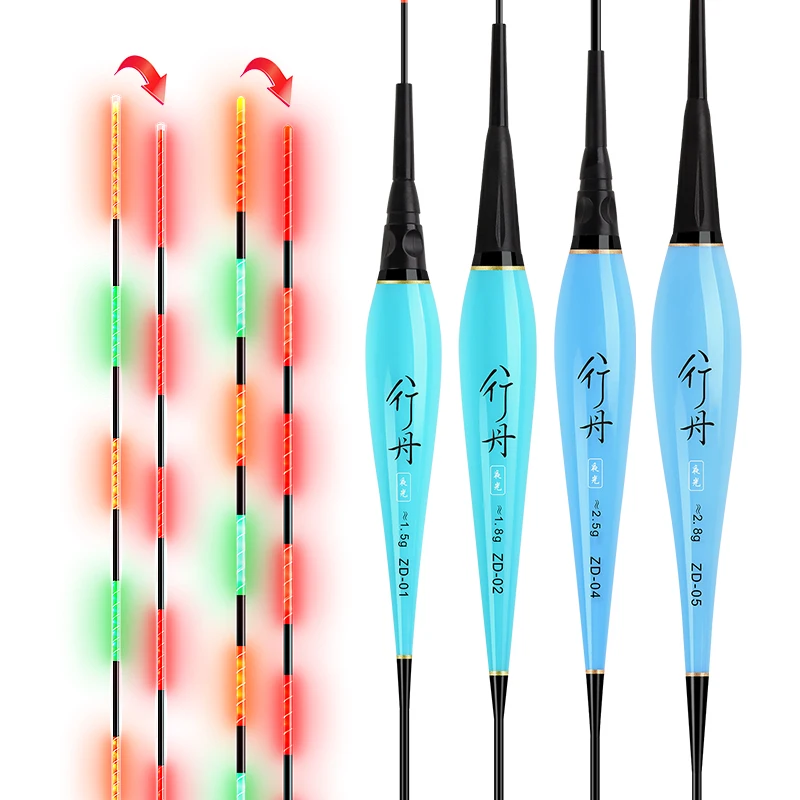 Flotadores de pesca con cambio de Color luminoso de flotadores 2 + 2 + 2 tubos flotantes + 2 CR425 + 2 frijoles flotador de pesca nocturna eléctrico de aguas poco profundas