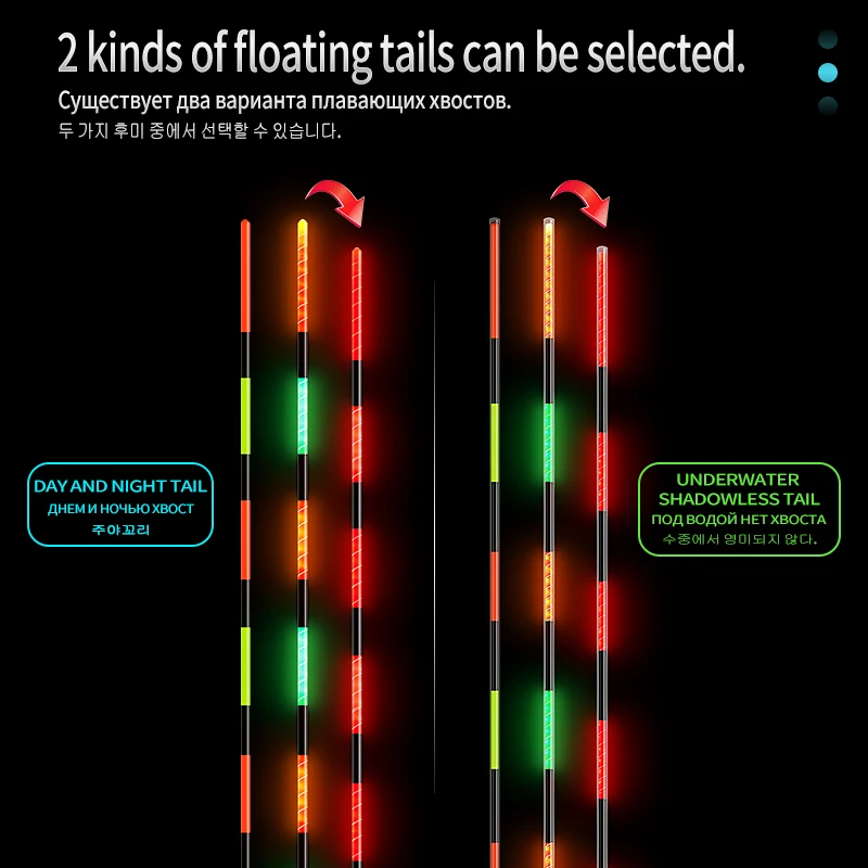 3. La cola flotante está hecha de material de fibra óptica, que tiene un buen rendimiento en la transmisión de luz.
