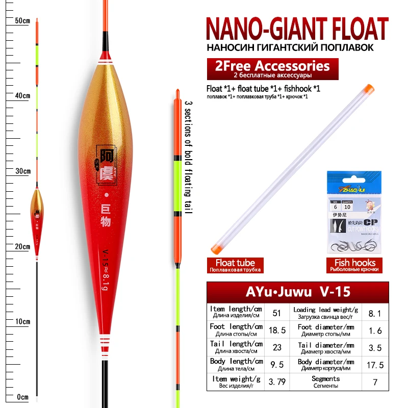 Longitud del artículo: 50,5 cm, longitud del pie: 18,5 cm, longitud de la cola: 23,0 cm, longitud del cuerpo: 9cm, peso del artículo: 3,62G, peso del plomo de carga: 7,2G, diámetro del pie: 1,6mm, diámetro de la cola: 3,5mm, diámetro del cuerpo: 16,9mm, segmentos: 7