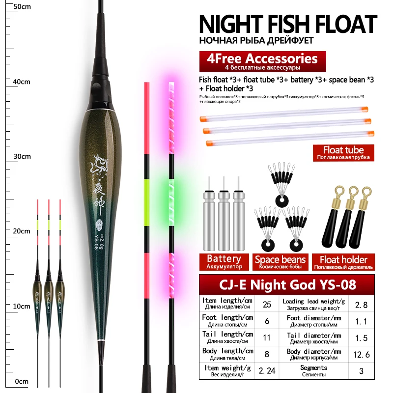 Elección 1:1 flotador de pesca por piezas + 1 pieza de frijol espacial + 1 pieza de batería + 1 pieza de tubo flotante + 1 pieza de soporte de flotador