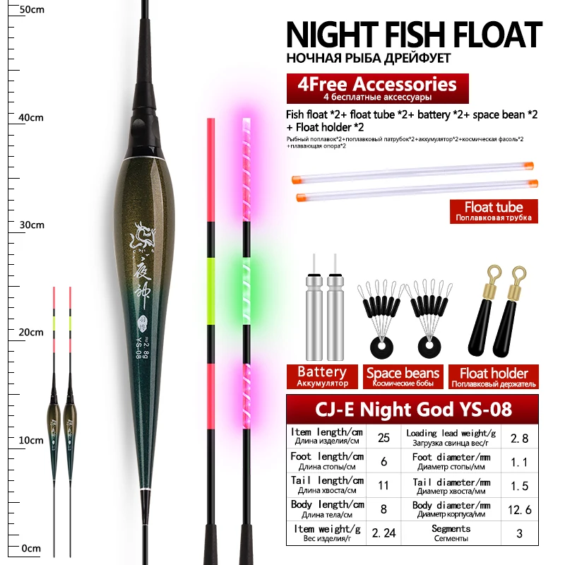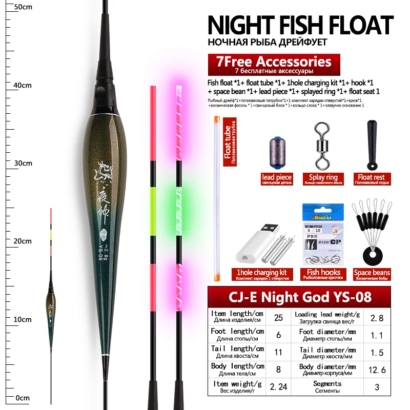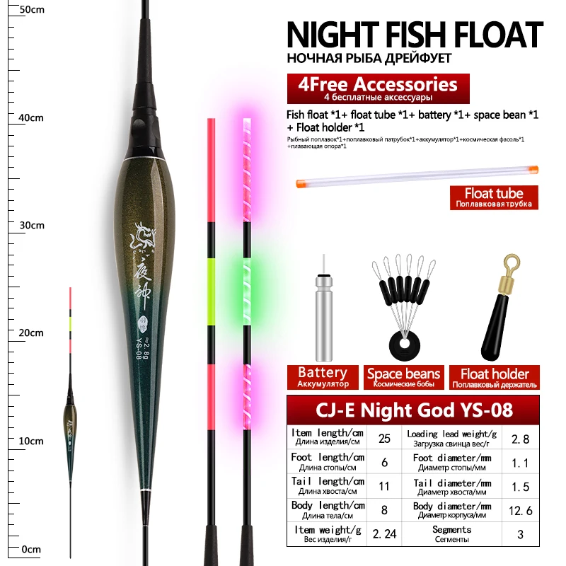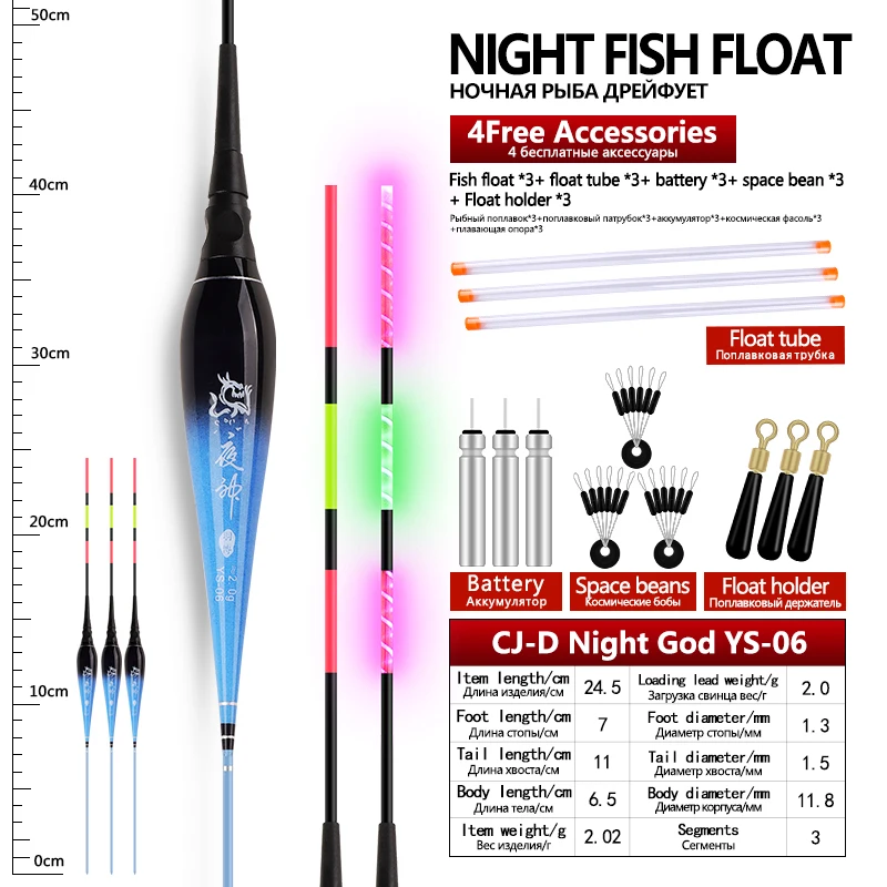 Elección 4: 1 flotador de pesca por piezas + 1 pieza de frijol espacial + 1 soporte de flotador de piezas + 1 Juego de baterías recargables + 1 tubo de flotador de piezas