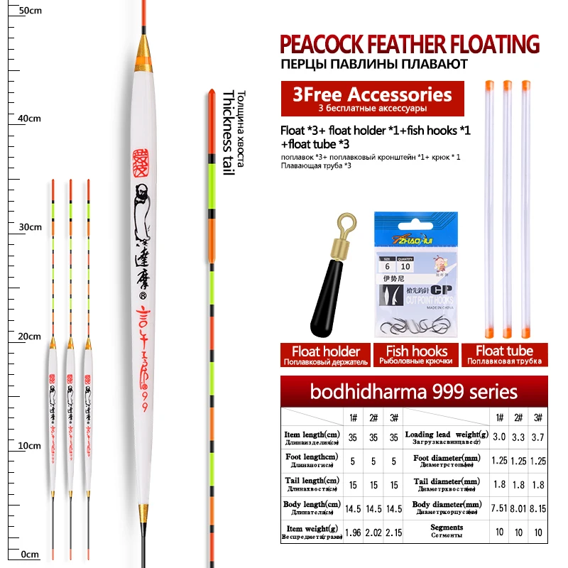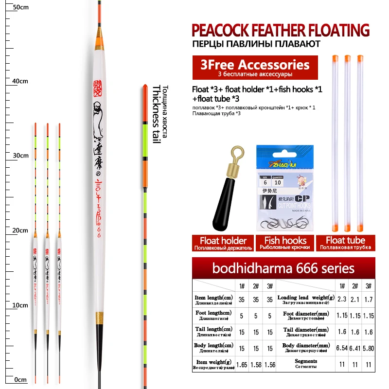 3 uds flotadores de pesca de plumas de pavo real + 1 gancho para bolsa + 1 boya descansa carpa cruciano flotador tapón Bobbers Vertical accesorios de pesca