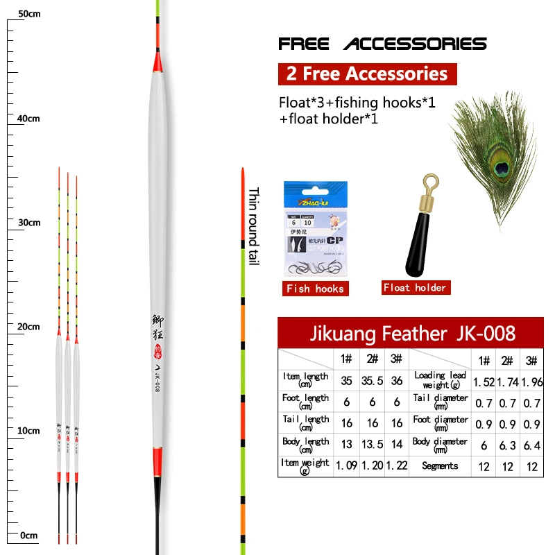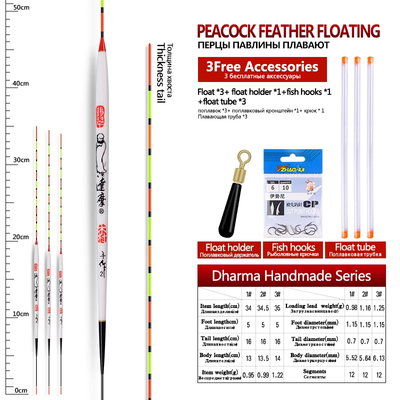 1. Los flotadores están hechos de plumas de pavo real masculinas que se caen de forma natural, lo que hace buena flotabilidad y es estable en el agua.