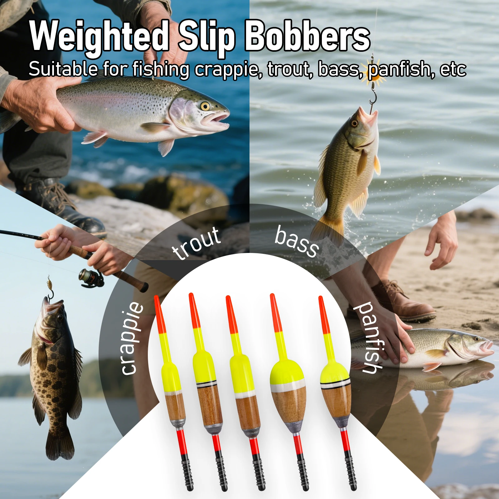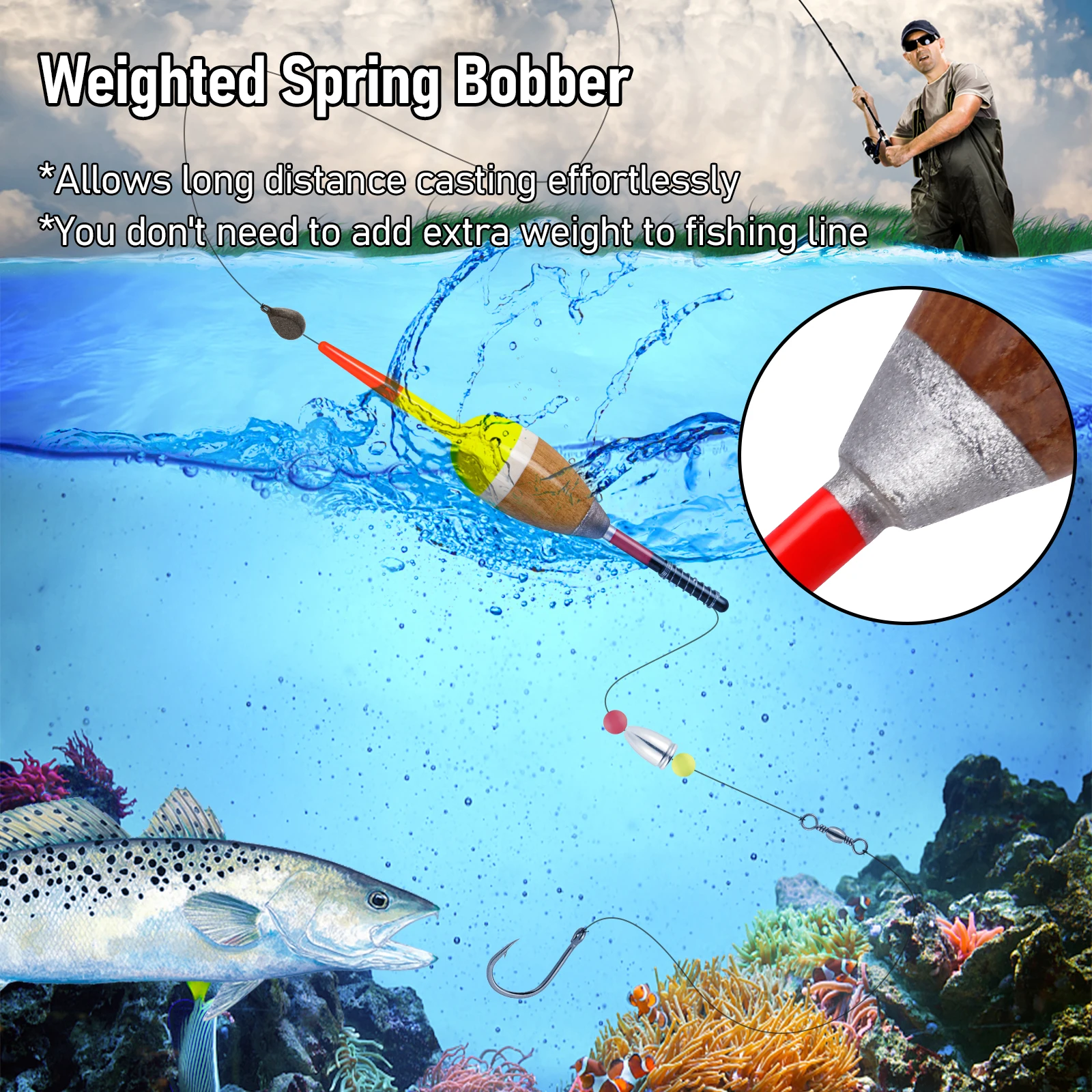 Flotador de resorte balsa ponderado preciso y receptivo. Idea para pescar tipo de pez, arroyos, trucha, lubina, panfish, lucio, bagre, walleyes, etc.