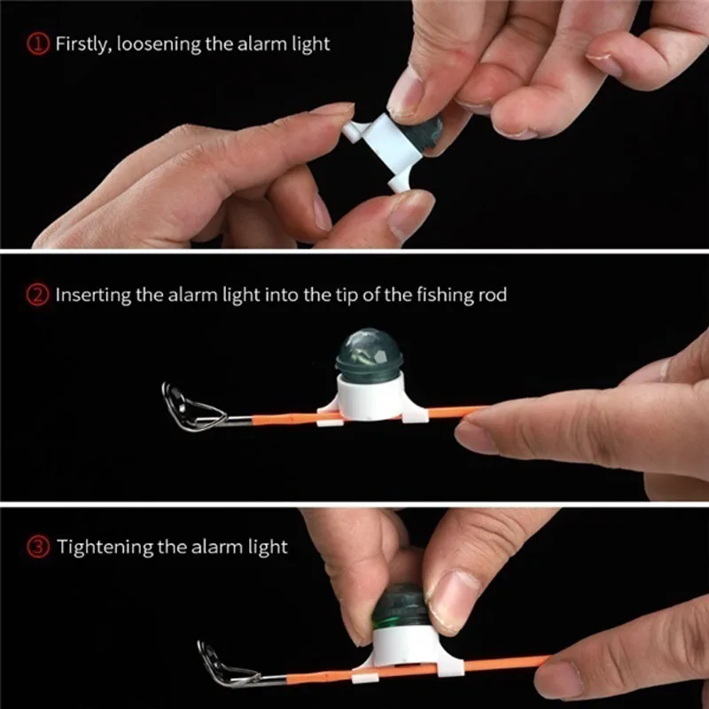 2. Insertar la luz de alarma en la punta de la caña de pescar.