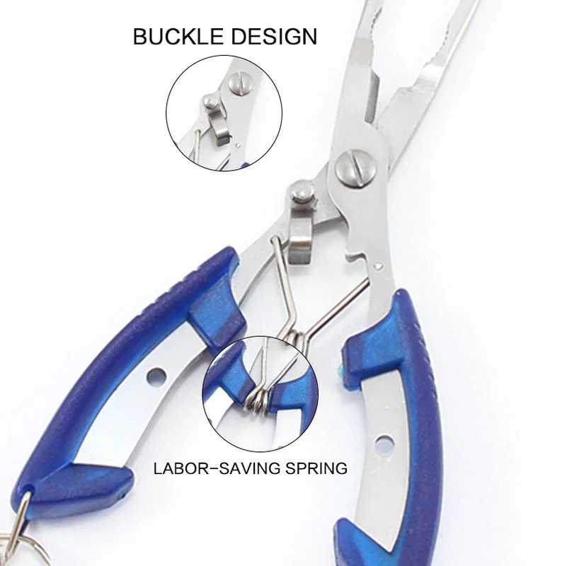 Tijeras de alicates de pesca, puede cortar el hilo de pescar y quitar el anzuelo, herramienta muy útil para los pescadores. Cortador de línea de pescado único antideslizante. No es fácil deslizar hacia arriba y hacia abajo.