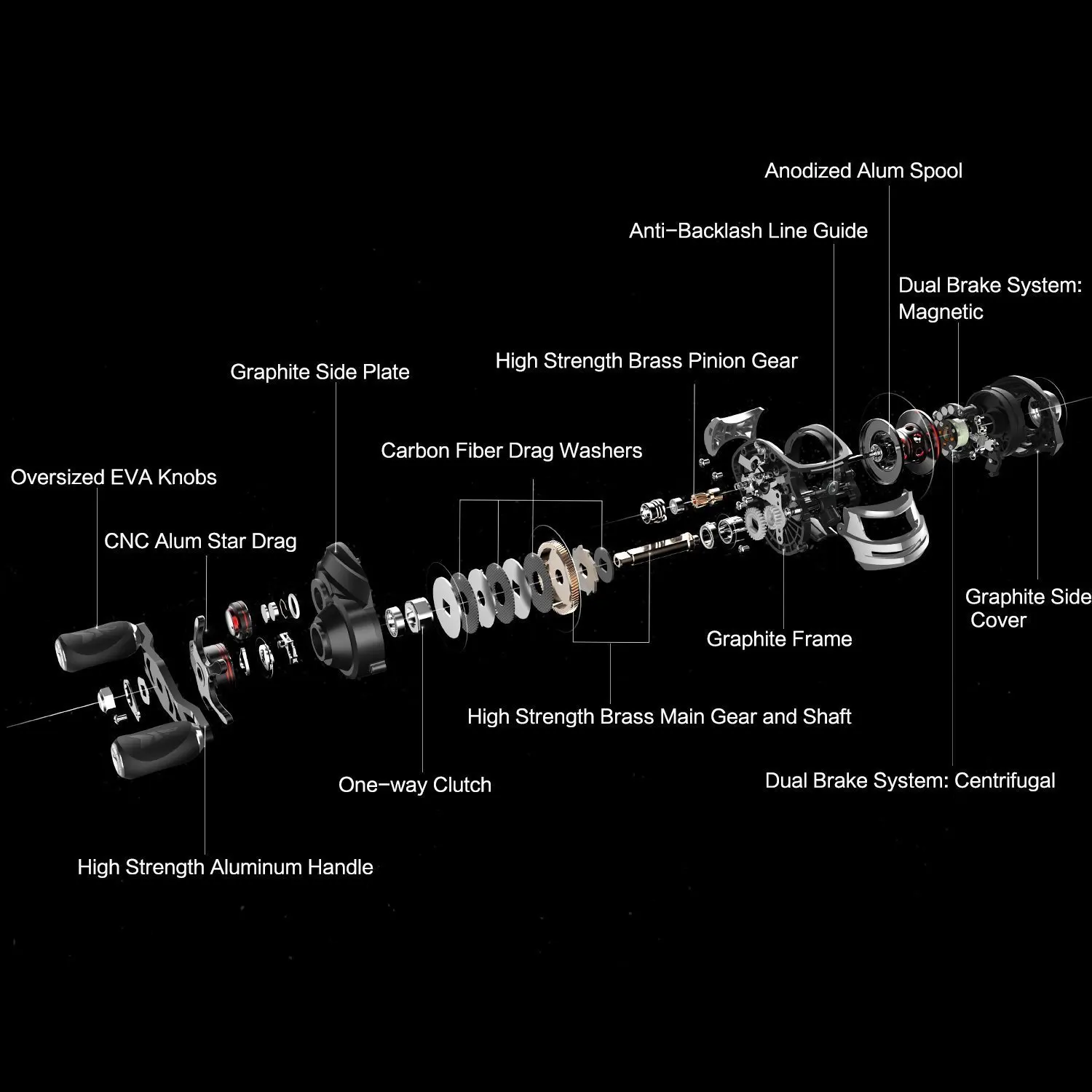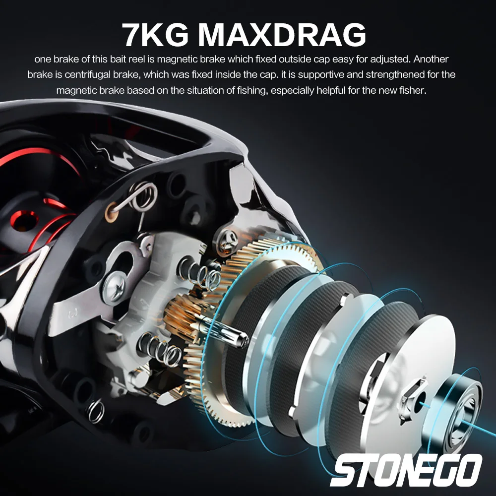 Un sistema de freno magnético ajustable externamente y la perilla de tensión Stonego prácticamente eliminan las pestañas traseras mientras son rápidas y fáciles de ajustar.