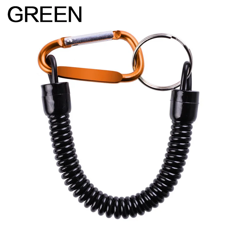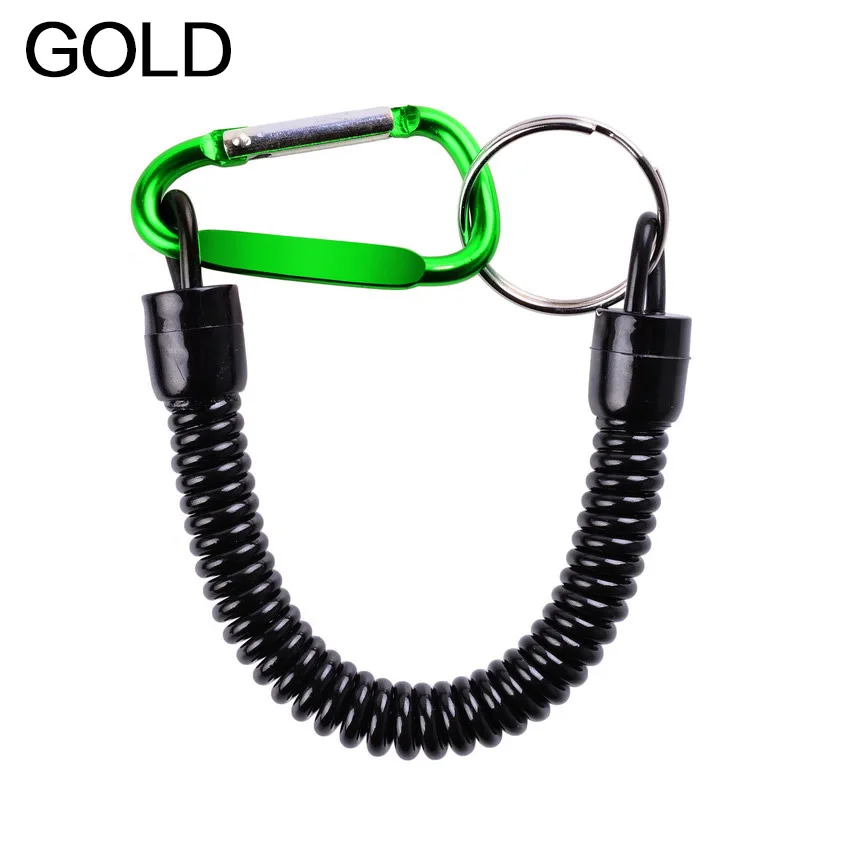 Mosquetón de aluminio en un extremo y anillo de hierro en el otro extremo puede fijar su equipo a su cinturón, barco o kayak.