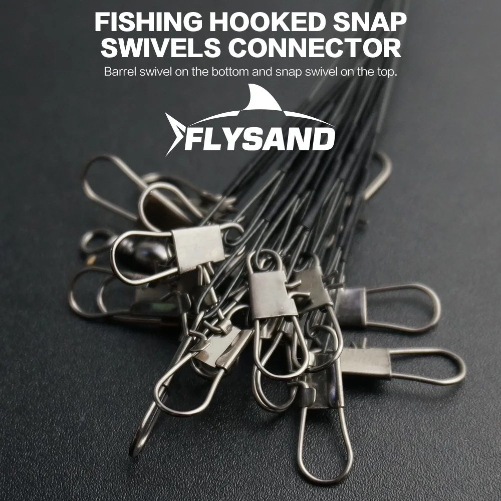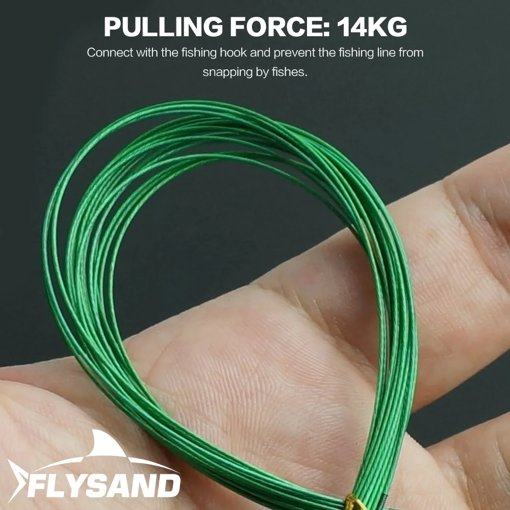 Flysand está hecho de acero inoxidable y recubierto de nailon con eslabones giratorios y broches. Lo suficientemente duradero y resistente para peces con dientes afilados.