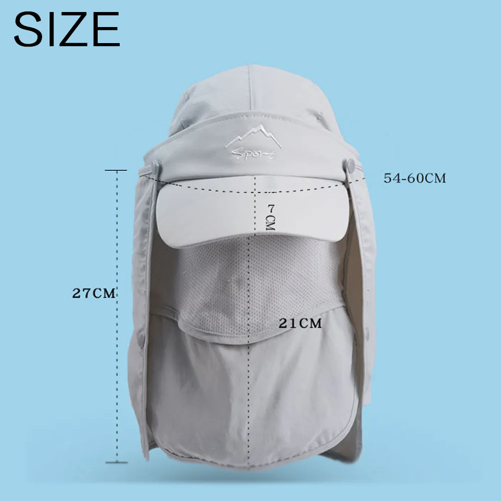 Esta tapa plana con cubiertas para cara y cuello extraíbles proporciona protección completa para tus oídos, cara y cuello mientras estás fuera. Es transpirable y ligero, ideal para pesca, jardinería, camping, senderismo y otras actividades al aire libre.