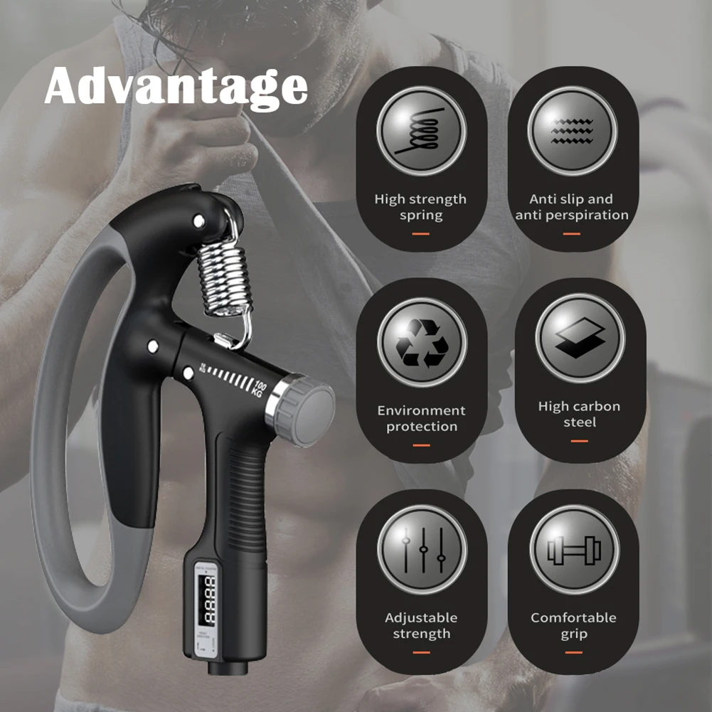 3, El contador electrónico incorporado graba agarres completos y restablece fácilmente, lo que facilita el conteo de su rutina de ejercicios y lleva rápidamente su fuerza al siguiente nivel.
