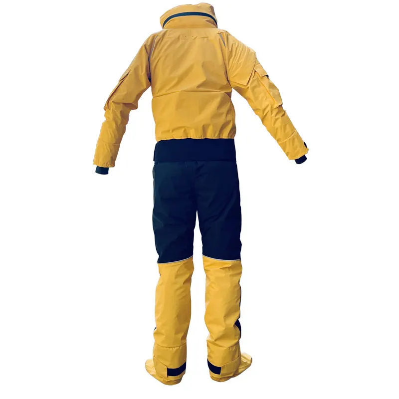 buen acabado, material resistente, cuello y mangas estancas. cremallera estanca. el detalle del negro en el culete le da buena apariencia al uso
