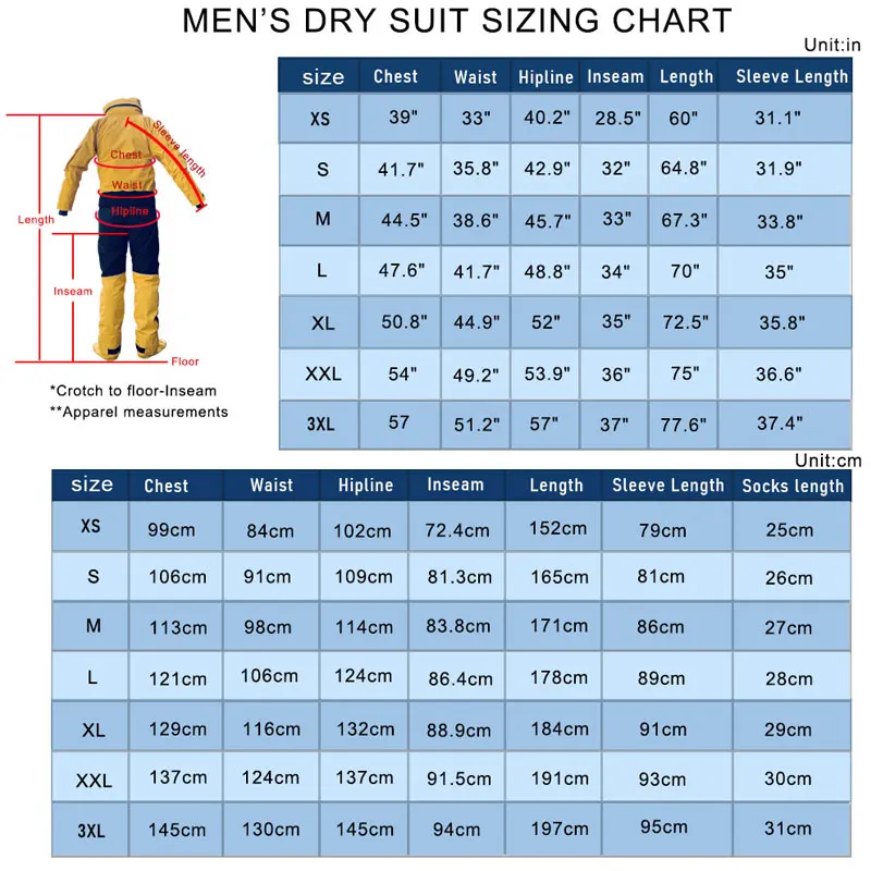 Un buen traje deja una gran primera impresión. Es fácil de poner, muy voluminoso. Mido 197 cm y peso 115 kg, y me queda bien. Elegí la talla más grande y no me equivoqué, ya que planeo usar ropa térmica debajo del traje.