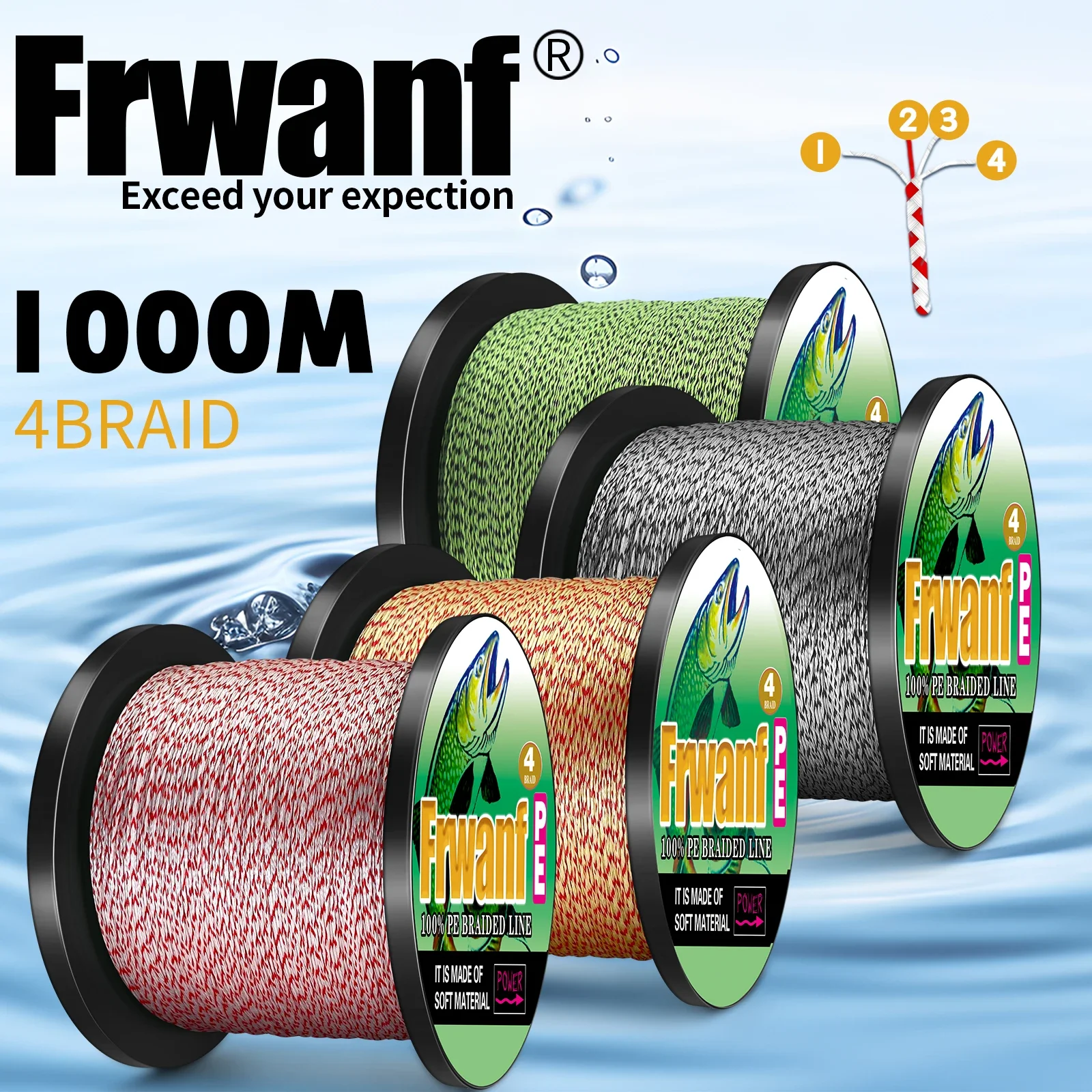 Frwanf 4 hebras 1000m líneas de pesca línea trenzada de PE línea multifilamento suave de Japón pesca en el mar carpa línea de punto de mosca línea de alambre de PE1.Línea de pesca de 1000M trenzada2.Línea de PE de 4 hebras, construcción trenzada única, hecha de fibras de PE de ultra alta resistencia.3.Revestimiento especial de superficie, más suave que nunca.4.Resistencia y tenacidad excepcionales, más duraderas, difíciles de tirar.5.Memoria extremadamente baja.6.El material de calidad garantiza una línea trenzada que no destiñe.